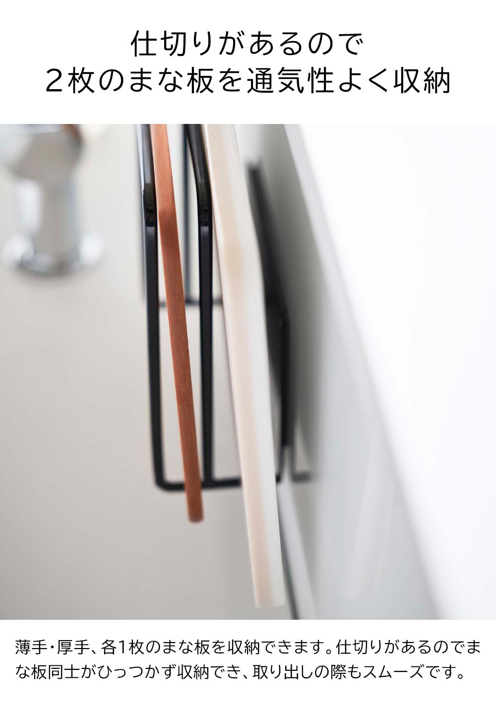 厚み約2.5cm・約1.5cmまでのまな板を各1枚ずつ収納可能