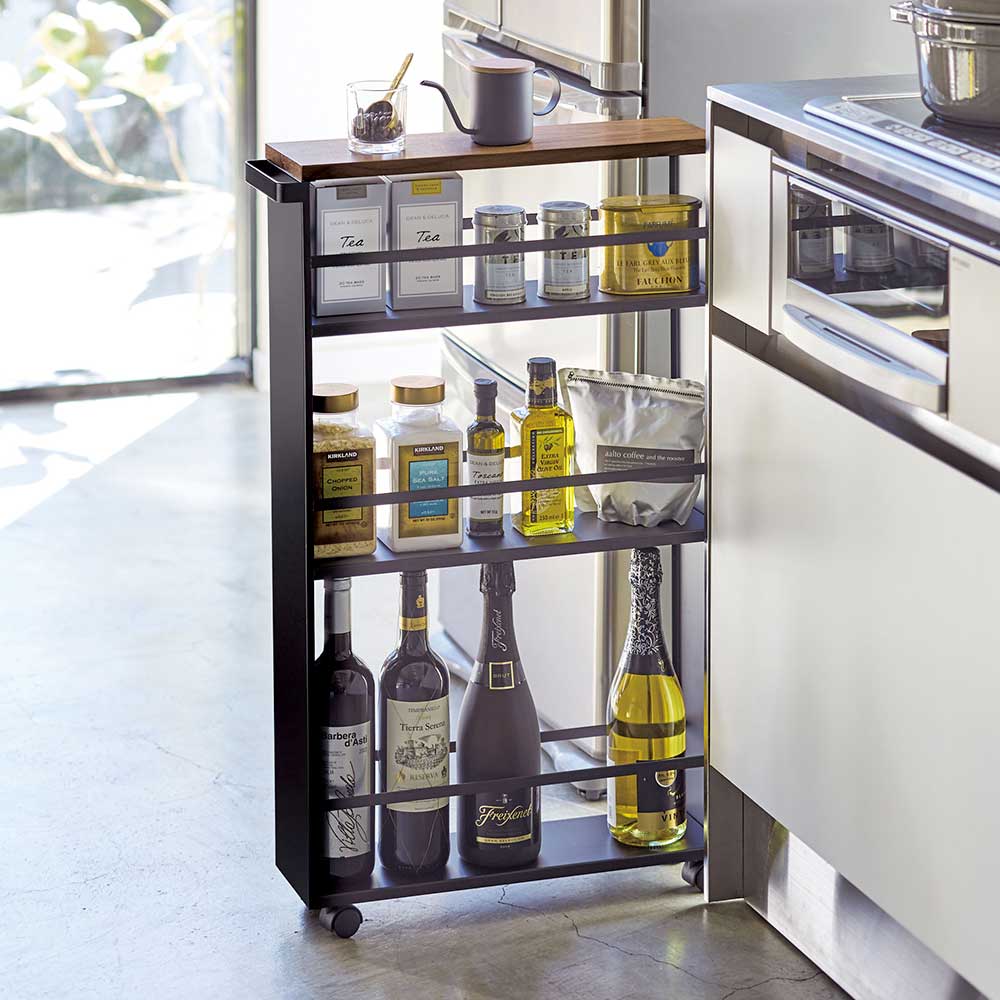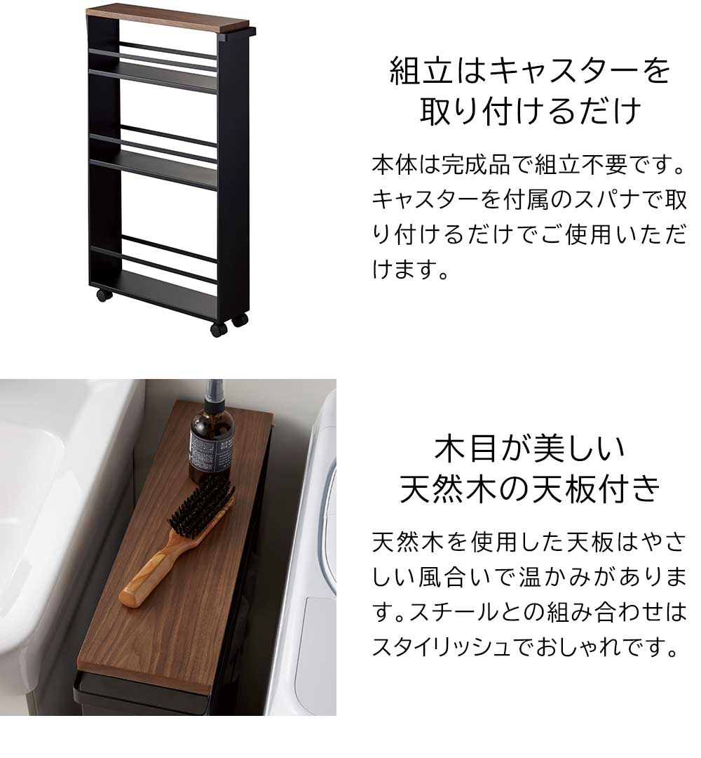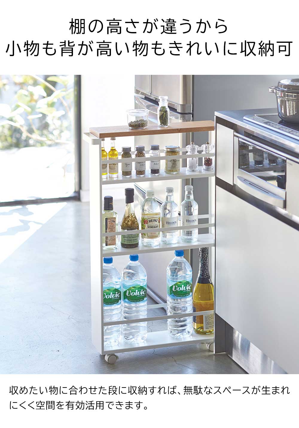 13cmのすき間に収まる キッチンや洗面所にあるちょっとしたすき間がもったいないと思うことはありませんか?こちらのワゴンならそんな無駄なスペースを収納場所として有効活用できます!幅約13cmでとってもスリム。キッチンや洗濯機の横にすっきり収まります。段ごとに高さが違うので、小さい物も大きい物も整理して収納可能。ペットボトルなどの重たい物を収納しても、ハンドルとキャスターが付いているので移動が楽。天板に木目の美しい天然木を使用したスタイリッシュなデザインです。 ![]() ![]() ![]() ![]() ![]() ![]() ![]() ![]() ![]() ![]() |