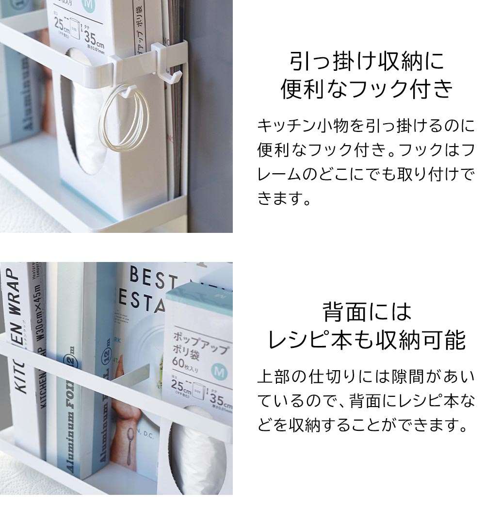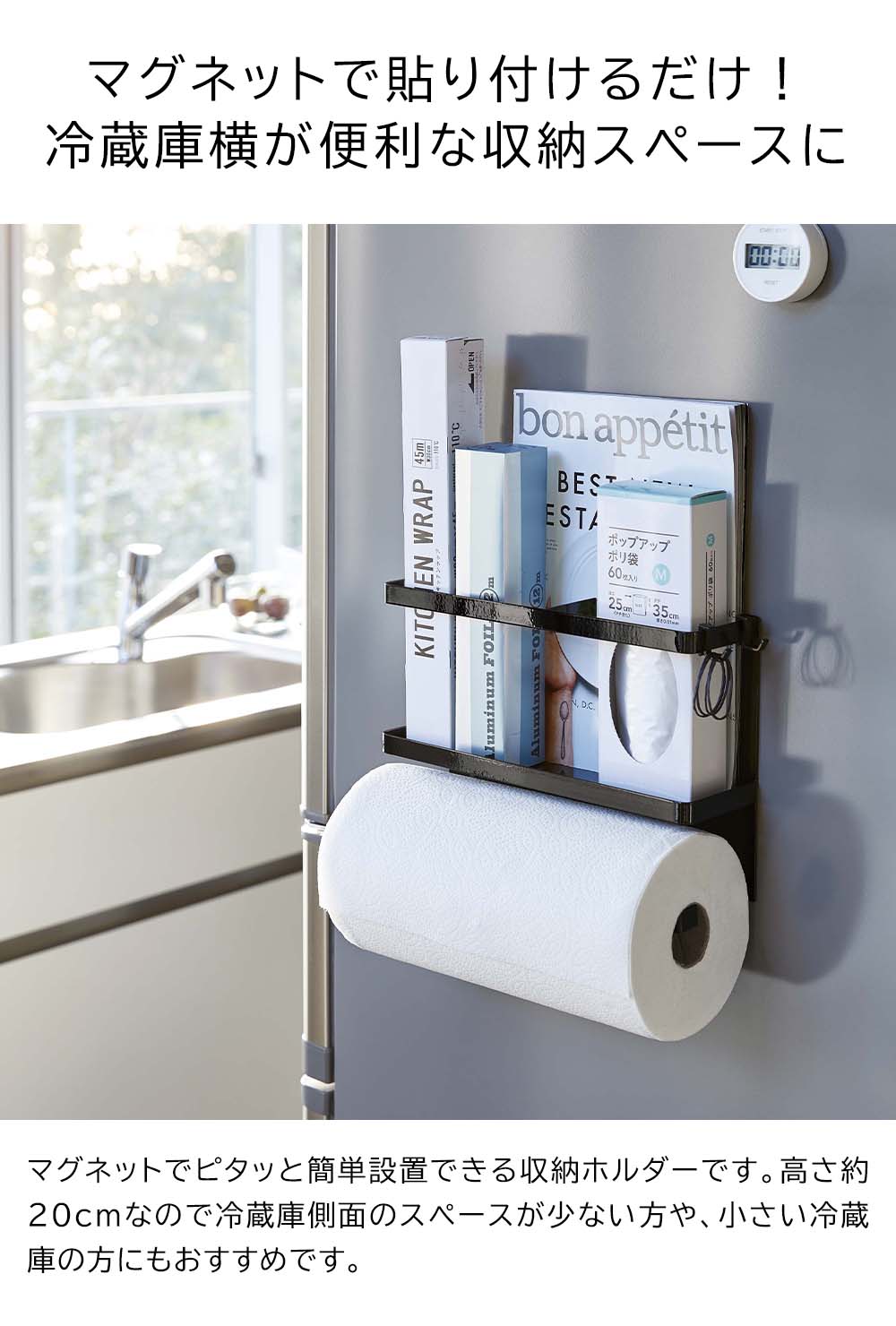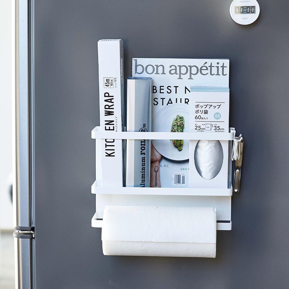 キッチン小物をまとめて収納 冷蔵庫側面にマグネットで簡単に取り付けできる収納ホルダーです。よく使うラップやキッチンペーパーなどを一括収納できます。キッチンペーパーロールは海外製の大判タイプにも対応。また、輪ゴムなどが掛けられるフックが2個付属します。高さ約20cmとコンパクトなので小さい冷蔵庫の方にもおすすめ。よく使うアイテムがサッと手に取れるのでとっても便利です。 ![]() ![]() ![]() ![]() ![]() ![]() ![]() ![]() ![]() |
