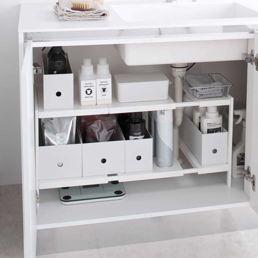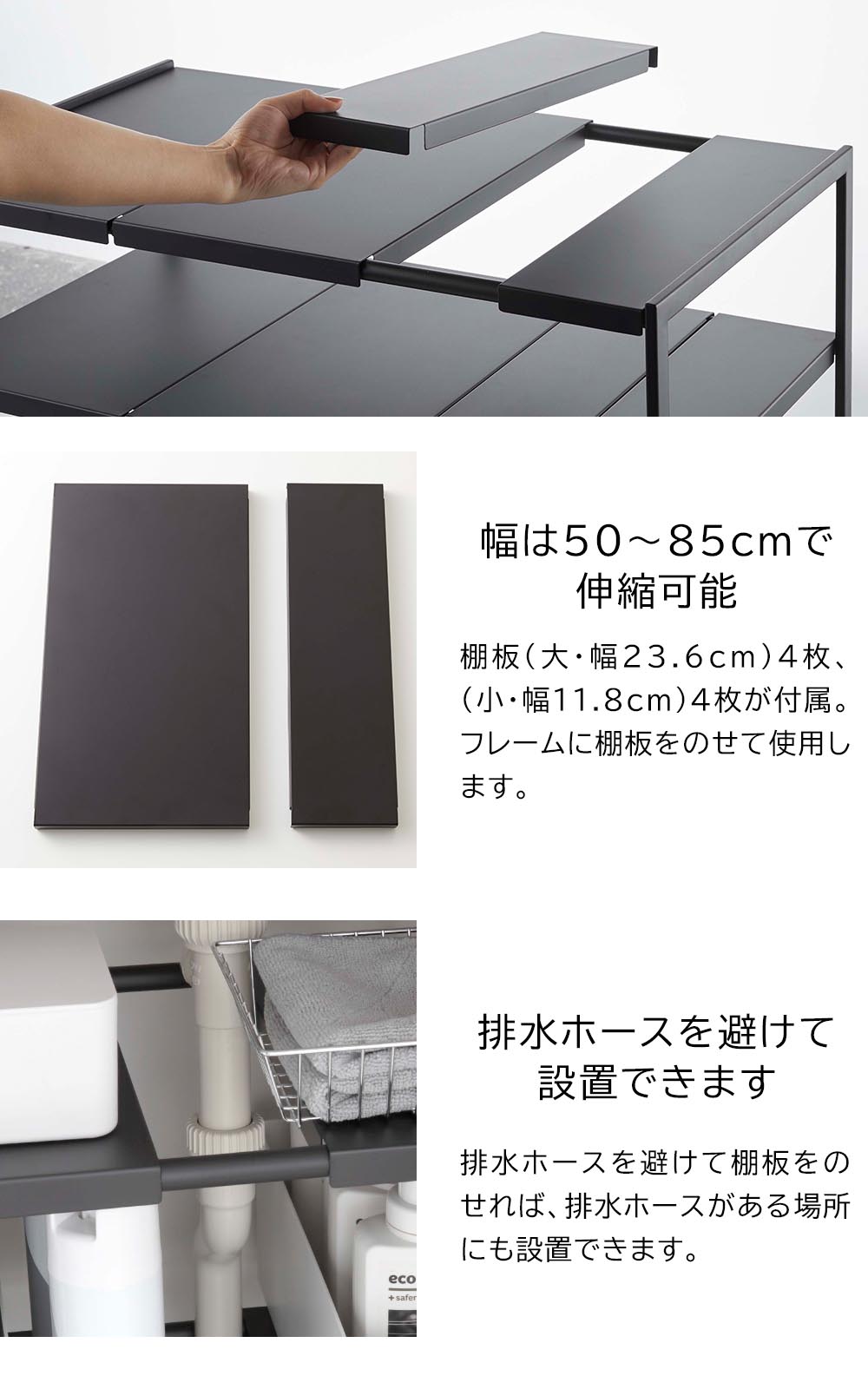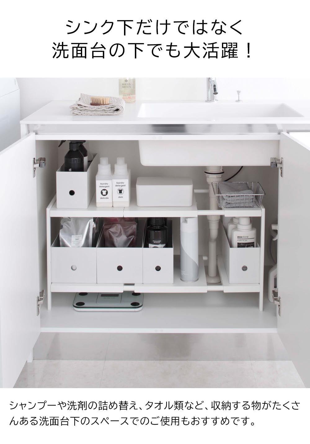 シンク下の空間をフル活用 高さ・横幅が調節でき、シンク下スペースを無駄なく有効活用できる収納力の高いラックです。奥行も40cmあり、奥の空間も無駄にしません。組立は工具不要で、縦のフレームに横のフレームをねじ込み棚板をのせるだけ。排水ホースを避けての設置も可能です。キッチンシンクの下だけではなく、洗面台の下でのご使用も便利です。 ![]() ![]() ![]() ![]() ![]() ![]() ![]() ![]() ![]() ![]() |