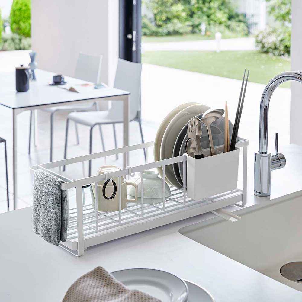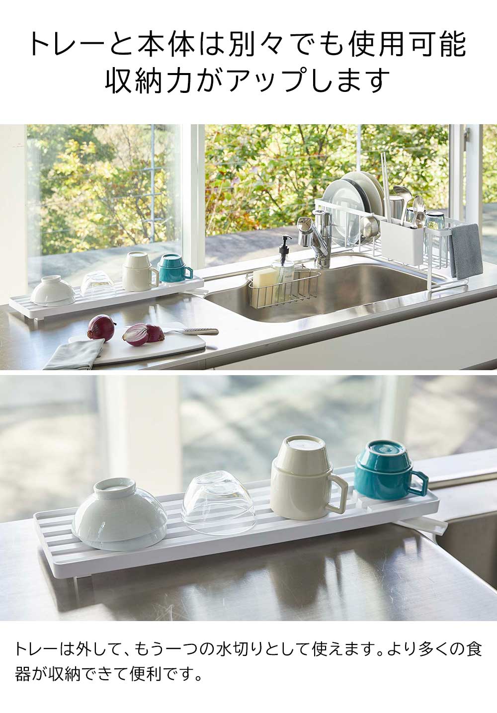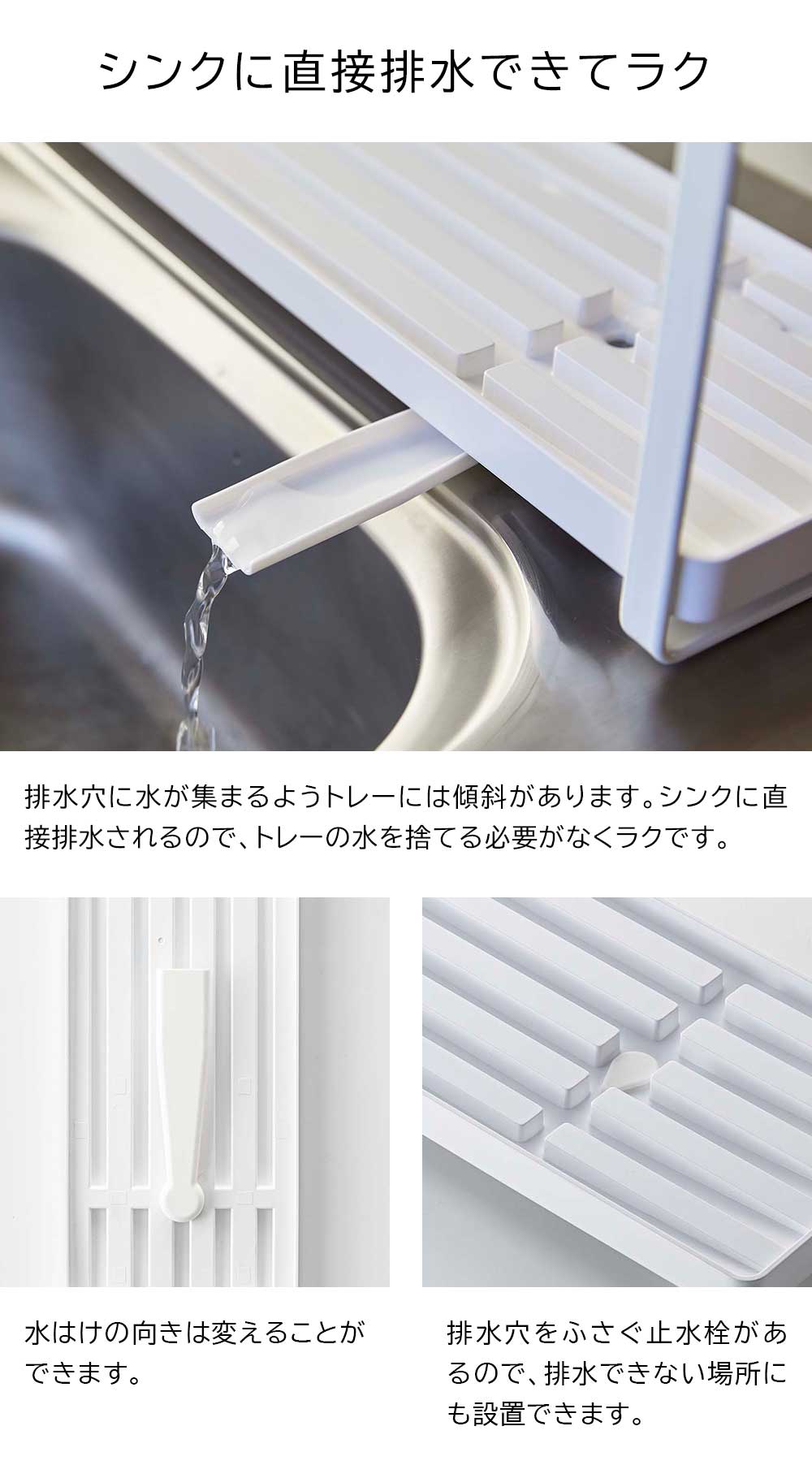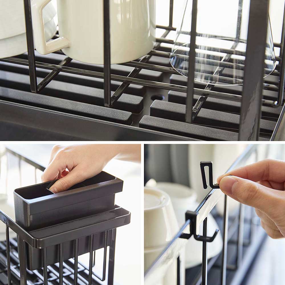 スッキリ使えるスリムサイズ キッチンで場所をとらずに置ける、奥行約16cmのスリムな水切りです。キッチンシンクに渡しても使えるので調理スペースを広く使いたい方にもおすすめ。トレーと本体は別々でも使用でき、収納量を増やすことができます。シンクに直接排水できる「水はけ」や、着脱できる「カトラリーポケット」「フック」など、使いやすい工夫があり機能的。モノトーンの落ち着いた佇まいがキッチンをおしゃれに演出してくれます。 ![]() ![]() ![]() ![]() ![]() ![]() ![]() ![]() ![]() ![]() ![]() |