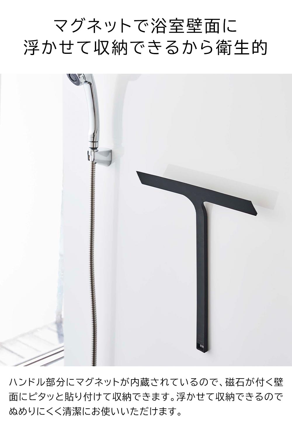 お風呂の壁にマグネットで ピタッと簡単取り付け! シリコーン製水切りワイパー