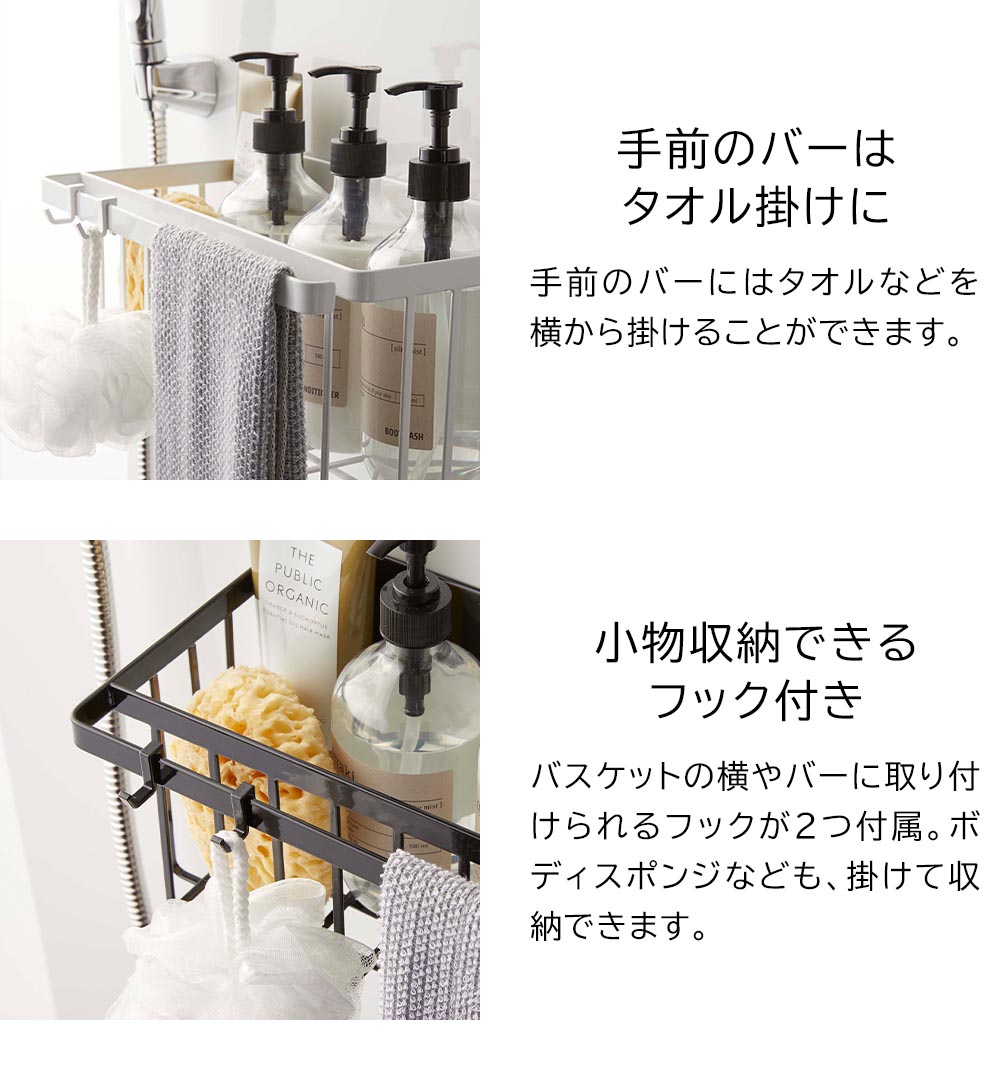 浴室壁面にマグネットで 浴室の壁面に強力マグネットで取り付けることができる便利なマルチバスケット。ディスペンサーボトル・チューブをまとめて収納できます。そのほか細々したお掃除用品やお子さまのおもちゃ入れにしても便利。水切れがいいから乾きやすく、底面の接地面も少ないからぬめりにくくお手入れも簡単。清潔に使えます。手前のバーにはタオルなどを横から掛けられます。小物を掛けられる便利なフック付き。 ![]() ![]() ![]() ![]() ![]() ![]() ![]() ![]() ![]() ![]() ![]() |