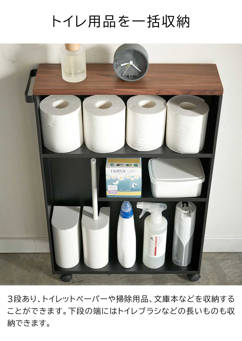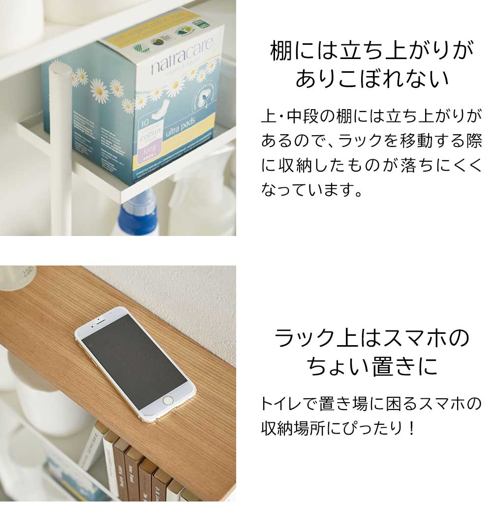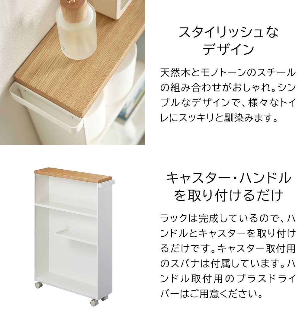 スリムなのに収納力◎ トイレって収納場所が少ないのに、置いておきたい物がたくさんありませんか?そんな方にオススメなのがこちらのトイレラック。奥行約13cmとスリムながらも頼れる収納力!トイレブラシなどの長い物を収めるスペースもあります。ハンドルとキャスター付きだから移動も簡単。裏向けに置けば中身が隠せてさらにすっきりとお使いいただけます。天然木とスチールの組み合わせは清潔感がありおしゃれでトイレをワンランク上の空間に。天板はトイレで置き場に困るスマホを置いておくのにピッタリです。 ![]() ![]() ![]() ![]() ![]() ![]() ![]() ![]() ![]() ![]() ![]() ![]() ![]() |