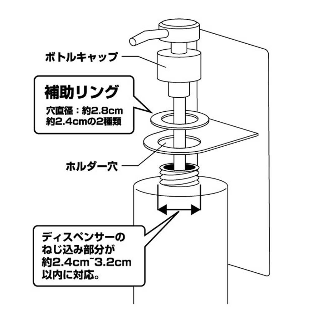 ディスペンサーのねじ込み部分が約2.4cm~約3.2cm以内