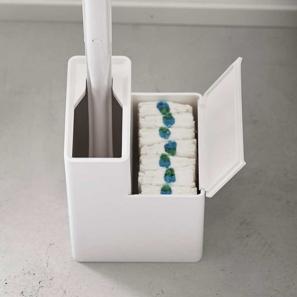 トイレ掃除に人気の「流せるトイレブラシ」のハンドルと替えのブラシをまとめて収納しておける便利なスタンドです。ハンドルはジャストサイズで、しっかりと立てて収納しておけます。替えブラシは約14個を収納可能。ハンドルと替えブラシを一緒に置いておけば、サッと取り付けてスムーズにお掃除に取り掛かれます。シンプルなデザインで清潔感があり、空間にスッキリとなじみます。