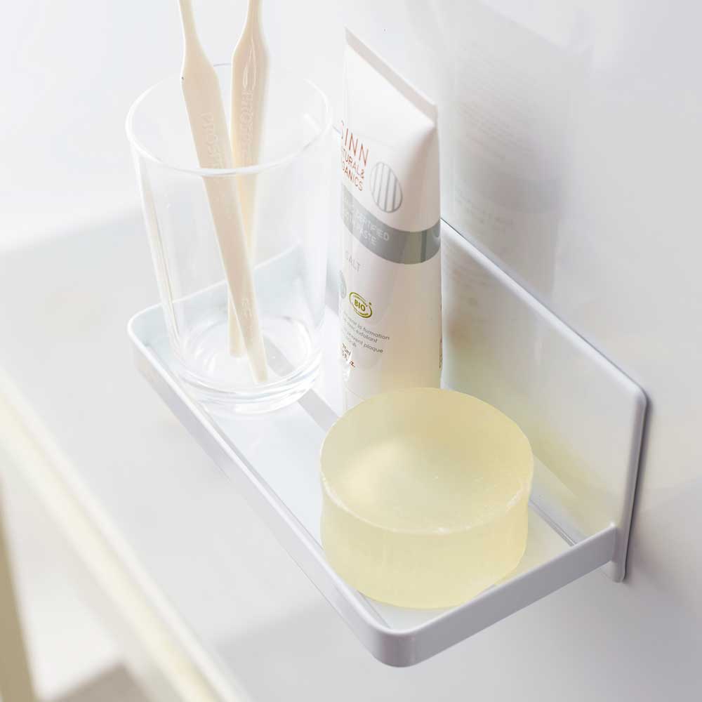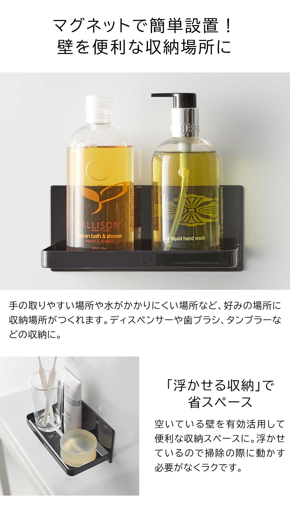 マグネットで簡単設置 収納場所の不足ちがちなバスルームで、簡単に収納スペースが増やせます。マグネットのつく壁に簡単に取り付け可能。シャンプーなどのディスペンサーを手に取りやすい位置にセットしたり、歯ブラシやタンブラーを水のかからない場所にキープするなど、お好みの位置に取り付けられます。収納が足りなければ複数個使いして必要なだけ収納場所が増やせるのも便利なポイント。浮かせているのでお掃除の際に動かす必要がなくラク、底にスリットがあるので水が溜まりにくくぬめりを防ぎます。「浮かせる収納」でお風呂場がスッキリ整うラックです。 ![]() ![]() ![]() ![]() ![]() ![]() ![]() ![]() |