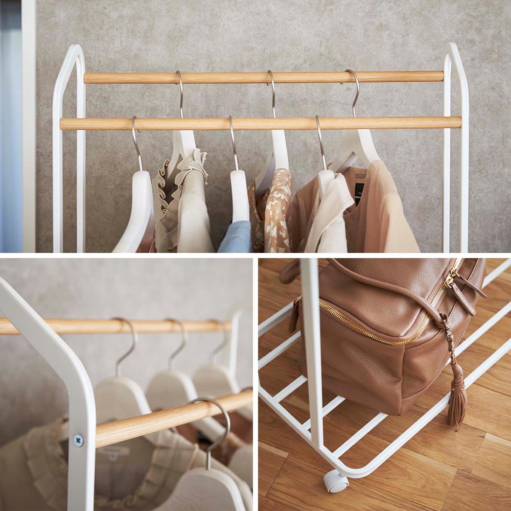 2本のバーにたっぷり収納可 前後2列にダブルで掛けられるから、衣類をたっぷり収納できます。バーには段差があり、後ろの服の取り出しもスムーズ。下の台座には、バッグやシューズが収納でき、ラック下のスペースも有効活用できます。キャスター付きだから、模様替えやお掃除の時も移動が簡単。天然木とスチールを組み合わせたスタイリッシュなデザインで、シンプルなフォルムは圧迫感がなくどんなお部屋にも馴染みます。 ![]() ![]() ![]() ![]() ![]() ![]() ![]() ![]() ![]() ![]() |