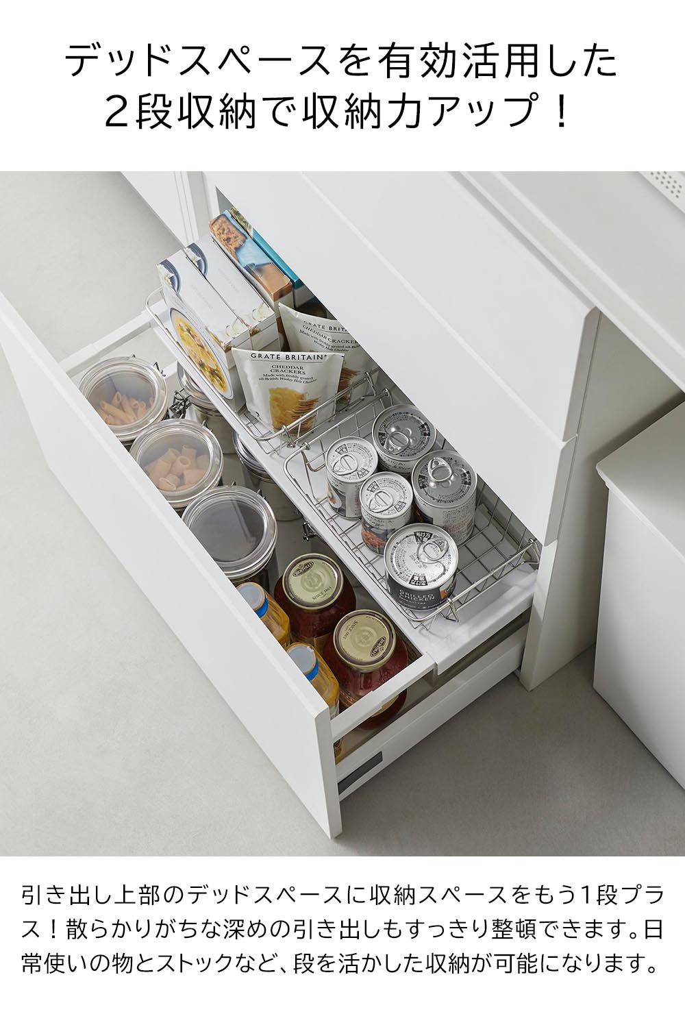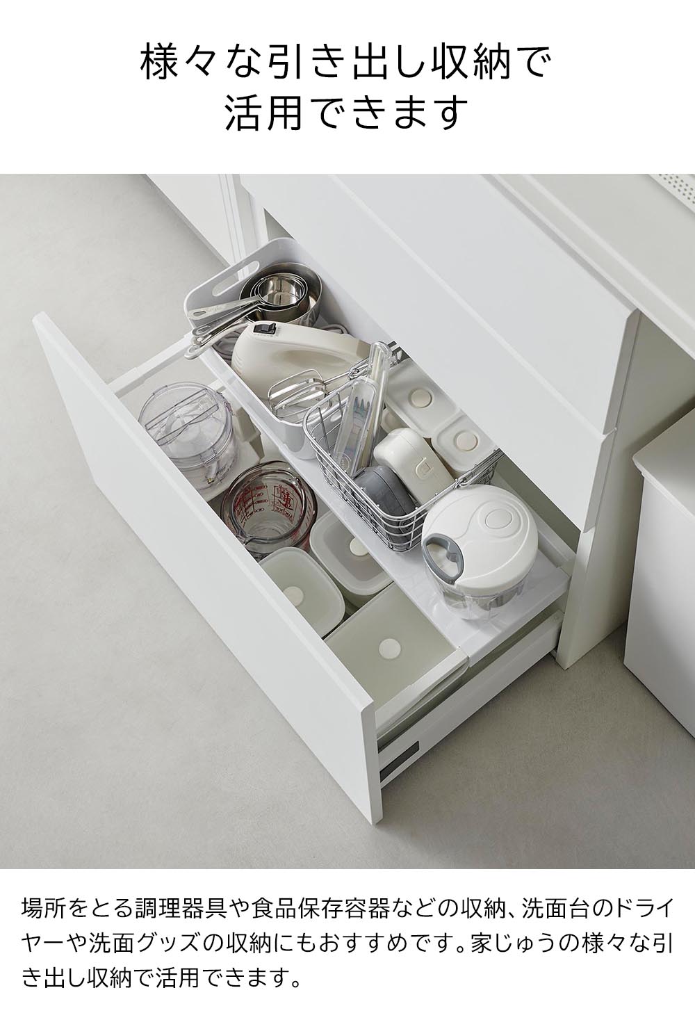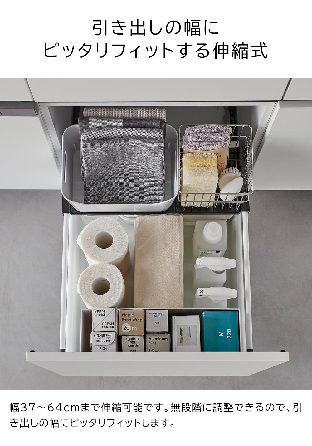 引き出し上部を有効活用 引き出し収納の上部のデッドスペースを有効活用して、収納力をアップしてくれる伸縮キッチンラック。 日常使いの物とストックなど、2段に分けて収納することで引き出し内をすっきり整頓できます。 幅37~64cmまで伸縮するので、引き出しの幅にピッタリフィット! キッチンや洗面台の引き出しのサイドバーに掛けるだけで簡単に設置できます。 引き出しの手前側に設置すれば、引き出しを全開しなくても物が取り出せるので便利! 場所をとる調理器具や食品保存容器などの収納、洗面台のドライヤーや洗面グッズの収納にもおすすめです。 ![]() ![]() ![]() ![]() ![]() ![]() ![]() ![]() ![]() ![]() ![]() |