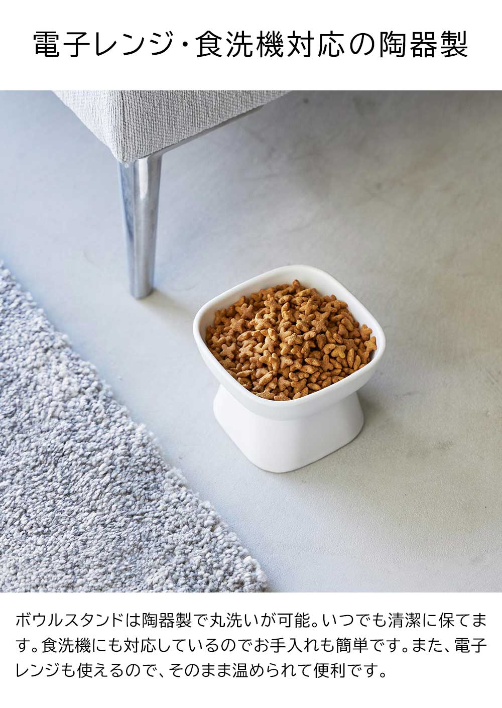 大切なペットの食事中の体勢をサポートしてくれる、食べやすい高さのフードボウルです。高さがあることで食事中の首や足腰の負担を軽減してくれます。そのまま温められる電子レンジ対応の陶器製。食洗機にも対応しているのでお手入れも簡単!いつでも清潔に保てます。お食事用と飲み水用など、用途で分けて複数使いをしても◎ インテリアになじむシンプルでスタイリッシュなデザインも魅力的です。