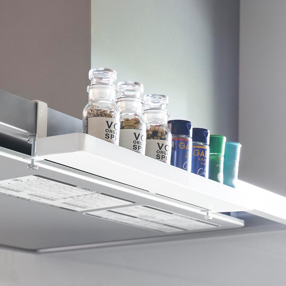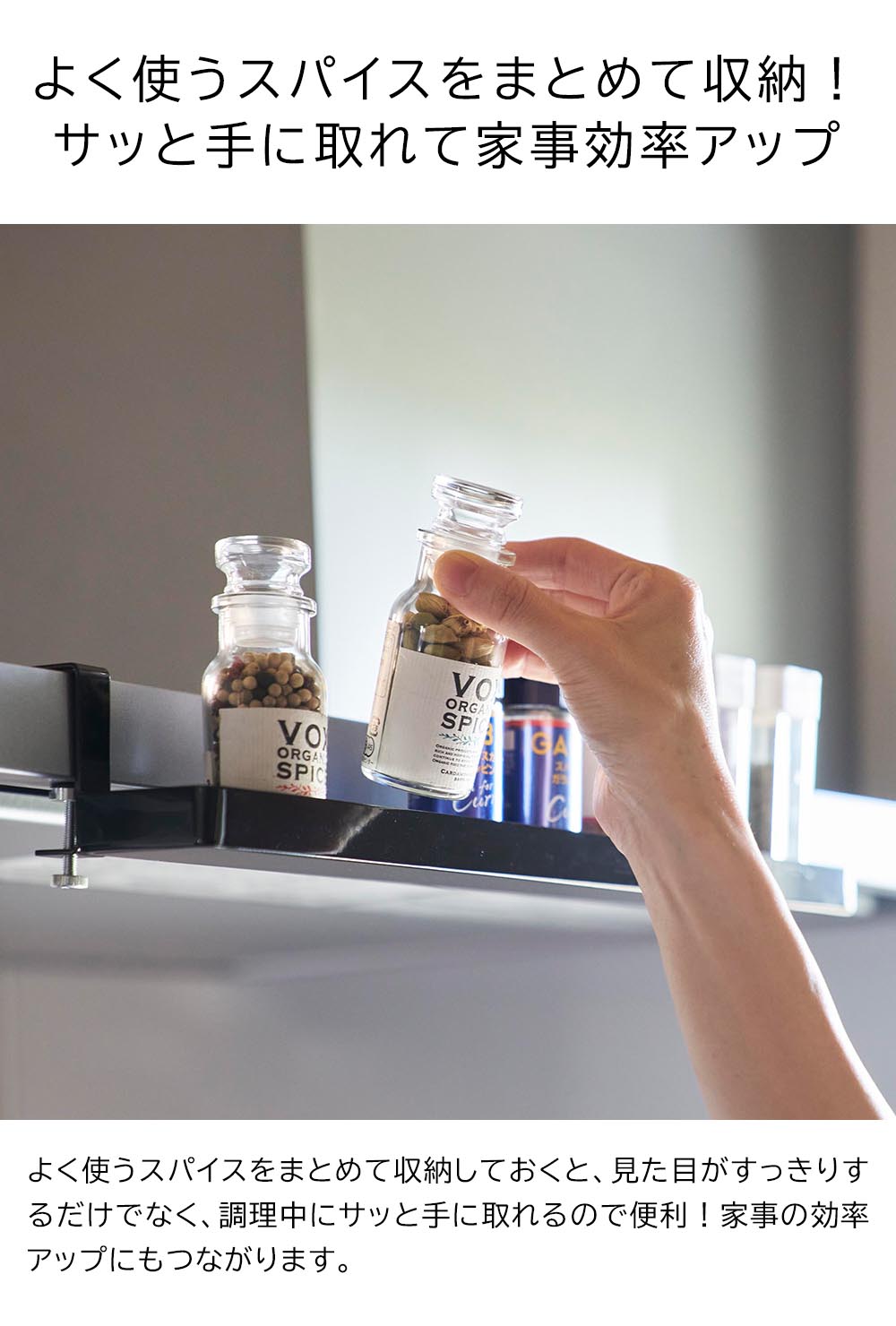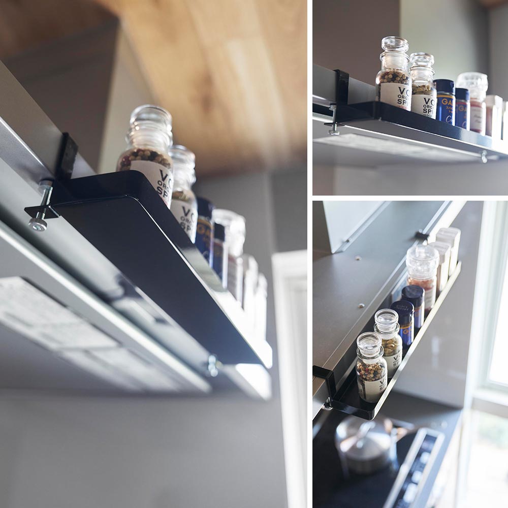 レンジフードに簡単設置 レンジフードに挟み込んで調節ネジで固定するだけで、お好みの位置に簡単に取り付けができるスパイスラック。 レンジフード横の空間を有効活用できる便利なアイテムです。 調理中に必要な調味料をサッと手に取れるので作業効率もアップ! ラックはフチ付きで物が落ちにくくなっているので、安心して小物を収納できます。 丈夫なスチール製。キッチンを整った印象にしてくれる、モノトーンのシンプルなデザインです。 ![]() ![]() ![]() ![]() ![]() ![]() ![]() ![]() |