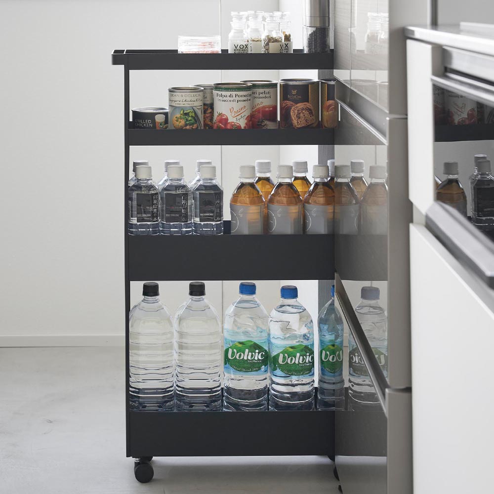 僅かな隙間にたっぷり収納 冷蔵庫横のわずかな隙間に収まるスリムなサイズの4段ワゴン。ジャムや雑貨などの小さな物から、2Lのペットボトルや酒瓶などの大きな物までひとまとめに収納できます。幅僅か13cmと、狭いキッチンに置いても邪魔にならない省スペースなワゴンです。スムーズに引き出して収納しやすい便利なハンドル&キャスター付き。サッと移動できるので掃除の際もラクラクです。キッチンだけでなくランドリルームでも活躍!洗濯機や洗面台横の隙間に、洗面台まわりの小物類や高さのある洗濯洗剤のボトルまで、まとめてスッキリと収納できます。付属のスパナでキャスターを取り付けるだけの簡単組み立てで、購入後すぐに使用できます。 ![]() ![]() ![]() ![]() ![]() ![]() ![]() ![]() ![]() ![]() ![]() ![]() ![]() ![]() ![]() ![]() ![]() |