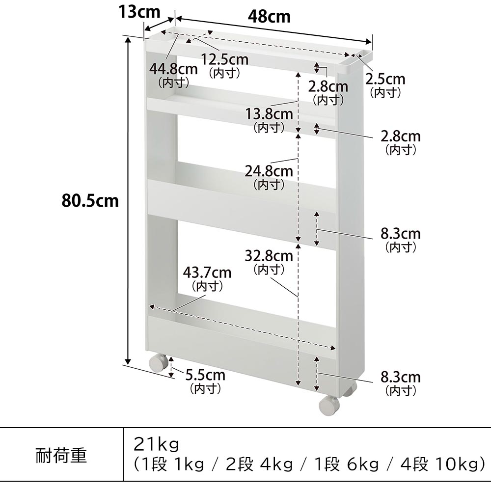 W13×D48×H80.5cm(キャスター含む)