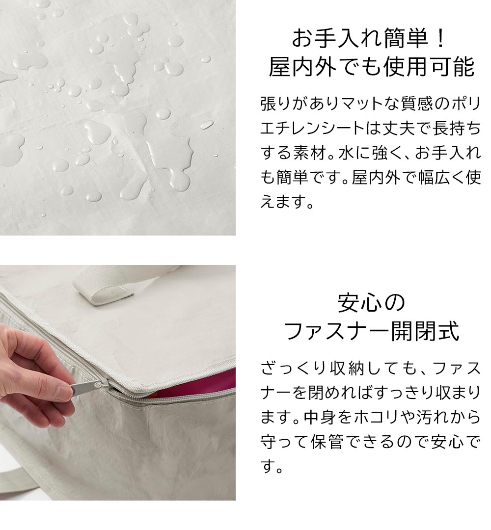 おもちゃを一括収納できる! 収納場所に困る家庭用プール、浮き輪、外遊び用のおもちゃをまとめて収納できる、ポリエチレンシートの収納バッグ。張りがありマットな質感のポリエチレンシートは、丈夫で長持ちする素材。水に強くお手入れも簡単で、屋内外で幅広く使えます。開口部はファスナー式で大きく開くので、収納しやすく取り出しやすい設計です。おもちゃ以外にも、季節用品やアウトドア用品の収納にもおすすめ!持ち運びに便利な持ち手付きで、外遊びやキャンプなどにも最適です。外側にも収納できる大きなポケット付き。 ![]() ![]() ![]() ![]() ![]() ![]() ![]() ![]() ![]() ![]() ![]() ![]() ![]() ![]() |