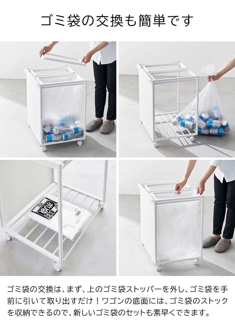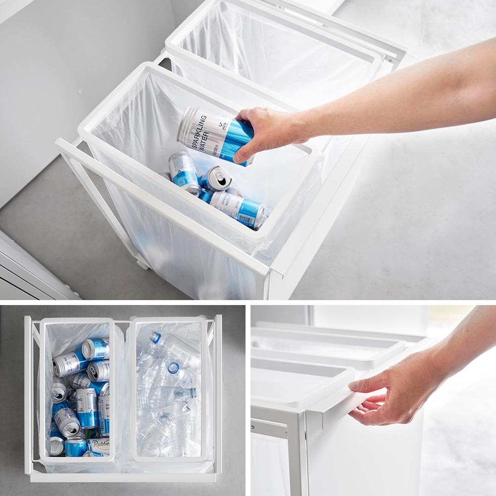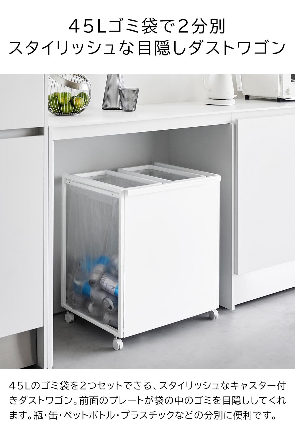 45Lゴミ袋を隠してセット 45Lのゴミ袋を2つセットできる、目隠し分別ダストワゴン。 捨て場所に困る、瓶・缶・ペットボトル・プラスチックなどの分別に便利です。 前面についている目隠しプレートが、中のゴミを上手に隠してくれます。 蓋がないので、高さに制限のあるカウンター下や食器棚下にもスッキリと収まり、蓋を開ける手間もなくゴミをサッと捨てることができます。 ハンドルとキャスター付きで移動がラクラク!ゴミ出しやお掃除の際にもスッと動かせます。 ゴミ袋の交換も簡単です。上のゴミ袋ストッパーを外し、ゴミ袋を手前に引いて取り出すだけ!ワゴンの底面には、ゴミ袋のストックを収納できるので、新しいゴミ袋のセットも素早くできます。 ![]() ![]() ![]() ![]() ![]() ![]() ![]() ![]() ![]() ![]() ![]() ![]() ![]() ![]() ![]() |