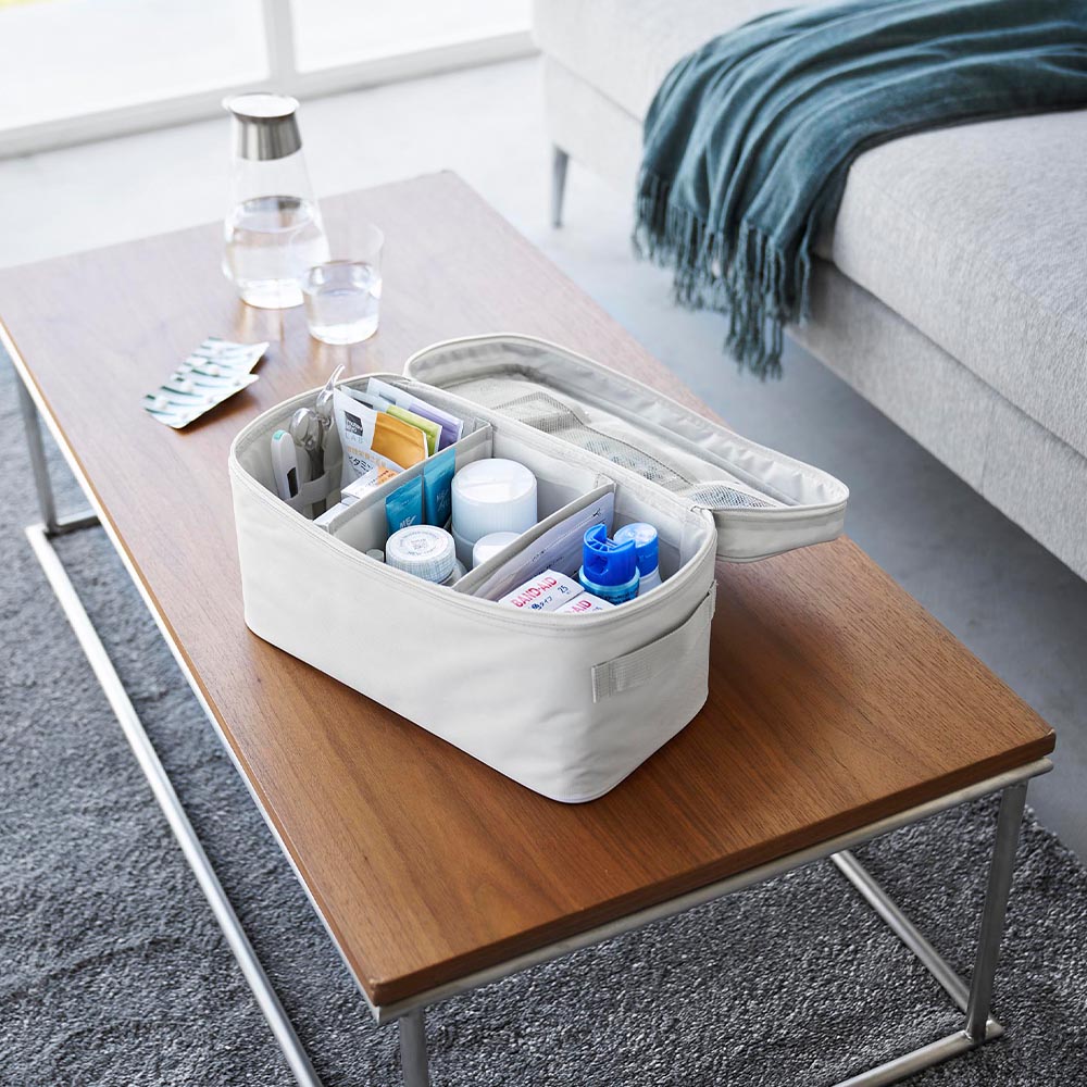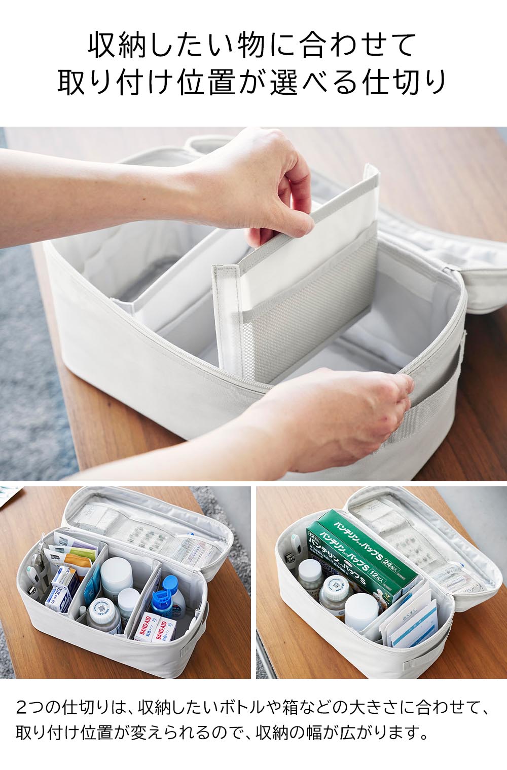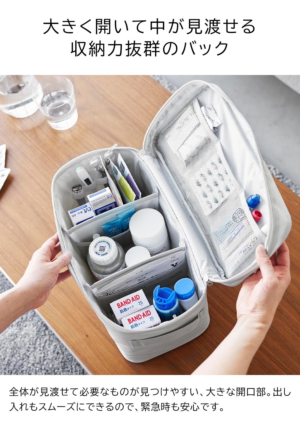 ポケットや仕切りを活用して 大きく開いて全体が見渡しやすい、収納力抜群の救急バッグです。 蓋の裏や仕切りには、中身が一目で分かるメッシュポケットがあり、薬などの細かい物を分類して収納できます。 内側の8つのゴムバンドホルダーを使えば、体温計やハサミ、チューブタイプの軟膏などが立てておけるので、必要な時の出し入れもスムーズです。 お好みの位置に取り付け可能な仕切りが2つあり、収納スペースを使いやすさに合わせたサイズにカスタマイズして使えます。 細かく仕切れて、収納力があり、持ち運びやすい取っ手付き。アウトドア用品や裁縫道具を入れてのご使用もおすすめです。 ![]() ![]() ![]() ![]() ![]() ![]() ![]() ![]() ![]() ![]() ![]() ![]() ![]() |