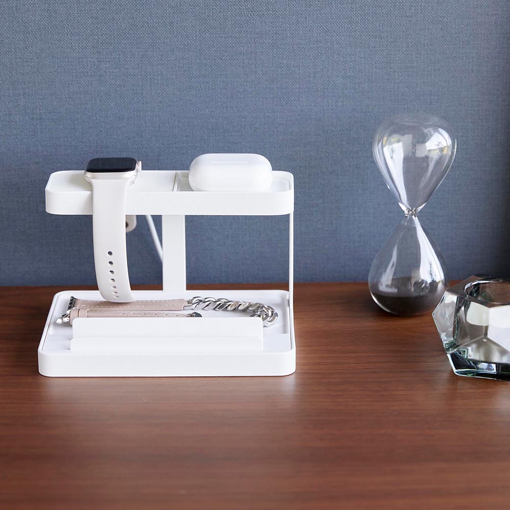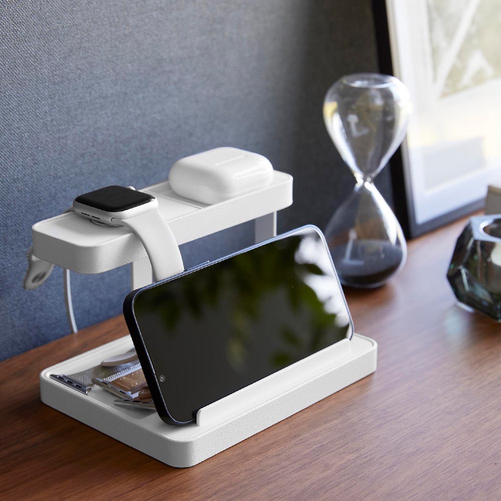 モバイル機器を充電しながら スマホやスマートウォッチ、ワイヤレスイヤホンなどを、充電しながら一か所にまとめてコンパクトに収納できる、便利なモバイル充電ステーションです。 上段にはスマートウォッチとワイヤレスイヤホンを、下段にはスマホとメガネや替えベルトなどを収納できます。 スマートウォッチ収納部にはシリコーン製のウォッチ用パッドが付いており、スマートウォッチ磁気充電ケーブルを固定できるので、充電しながらの収納もラクラク!ウォッチ用パッドを裏返すと平らな面になっている為、普通の腕時計の収納にもご使用いただけます。 ワイヤレスイヤホン収納部には僅かにフチが付いているので置いた物が落下しにくくなっています。リングやピアスなどのアクセサリー類の収納にも便利です。 下段のスマホ収納部は溝になっており、スマホを挟み、立てかけて収納します。スマホは縦横どちらの向きでも収納可能です。また、タブレットも収納できます。下段の奥側のトレーは、スマートウォッチの替えベルトやメガネなどの収納に便利な場所です。 ![]() ![]() ![]() ![]() ![]() ![]() ![]() ![]() ![]() ![]() ![]() ![]() ![]() ![]() ![]() ![]() |