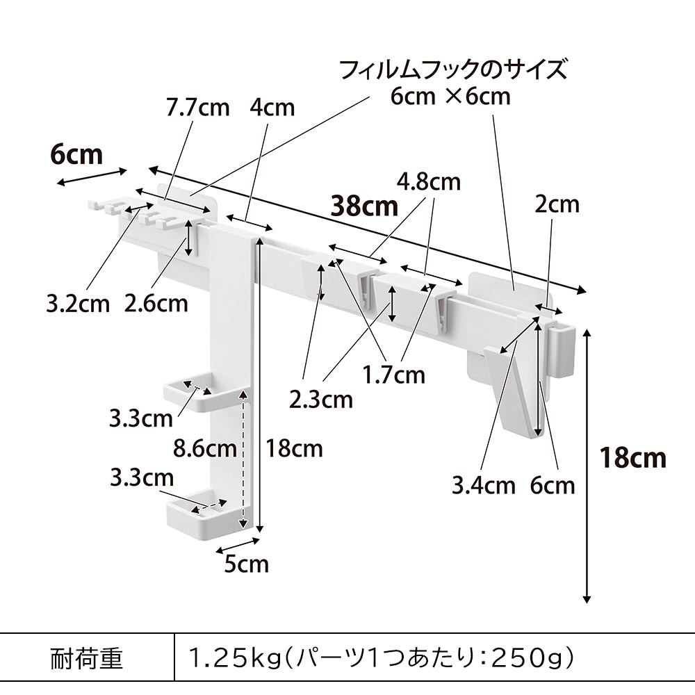 ・本体(各パーツ取り付け時):W38×D6×H18cm(フィルムフック含まず)