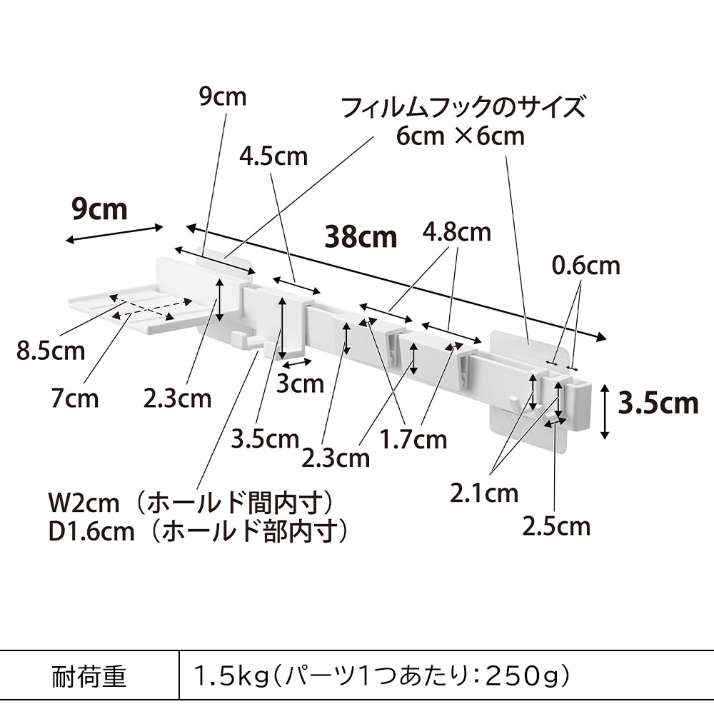 本体(各パーツ取り付け時):W38×D9×H3.5cm(フィルムフック含まず)