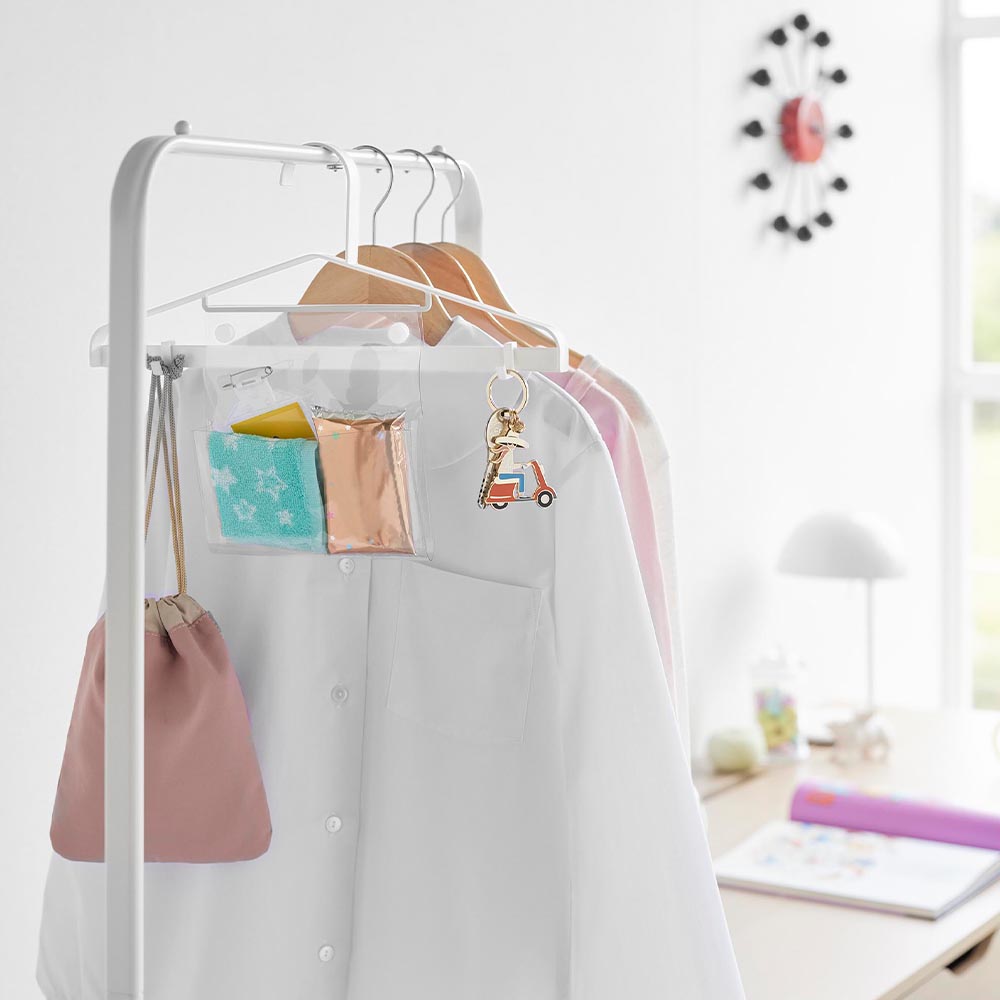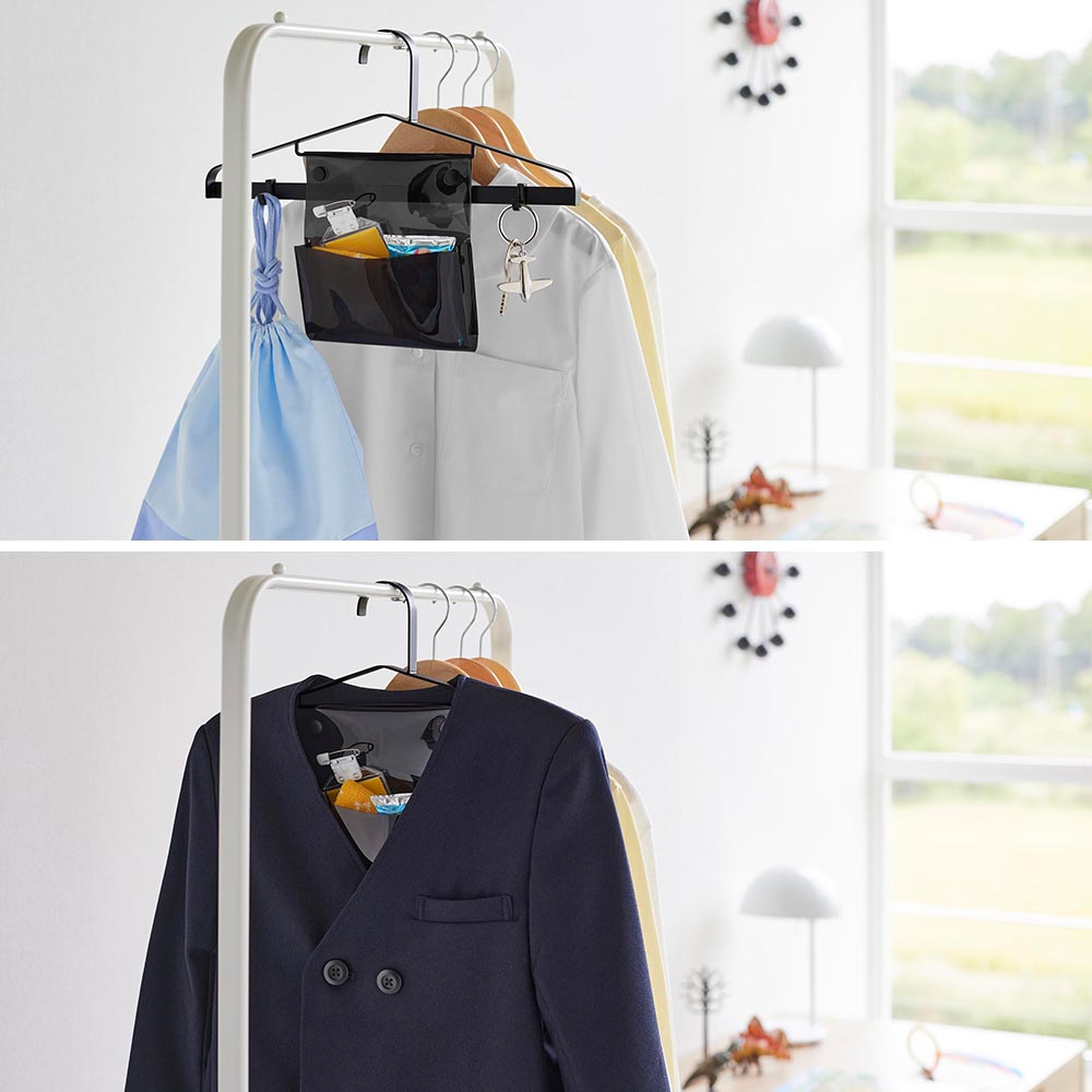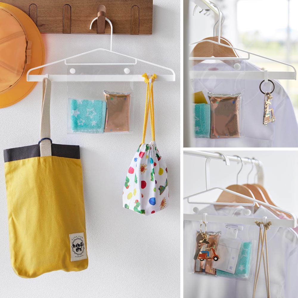 制服と一緒に小物がまとまり 通園・通学・おでかけに必要な持ち物がまとめて掛けられるハンガーです。 ハンガーについている可動フックや透明ポケットに、ティッシュやハンカチ、巾着袋などの「明日の持ち物」をまとめておけます。 収納場所が決まっていると、お片付けがしやすいため、翌日の準備も自然と身につきます。 もちろん、ハンガーに上着や制服を掛けることも可能。 140までの子供服に対応しており、お子さまの成長に合わせて使用できます。 ![]() ![]() ![]() ![]() ![]() ![]() ![]() ![]() ![]() ![]() ![]() ![]() |