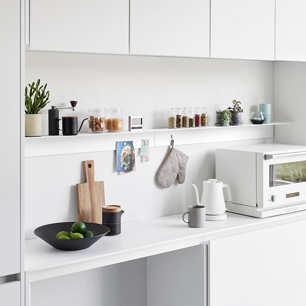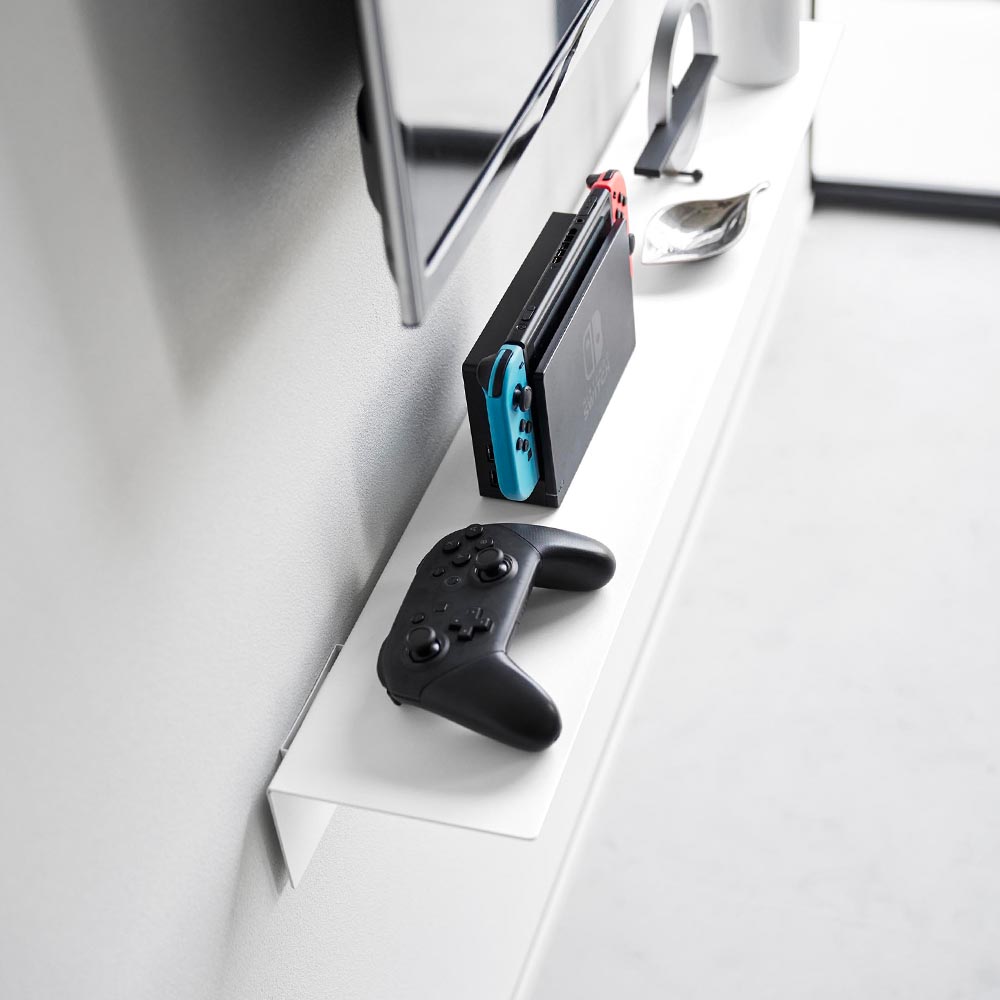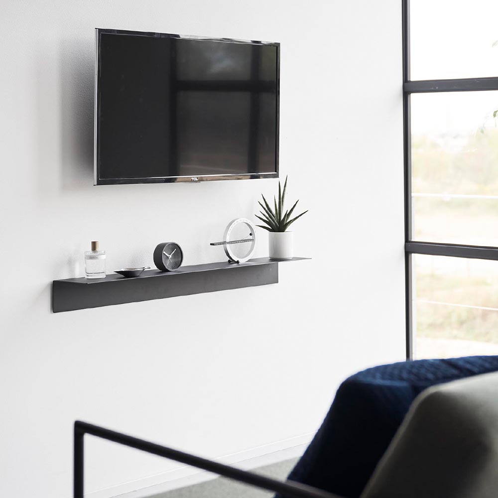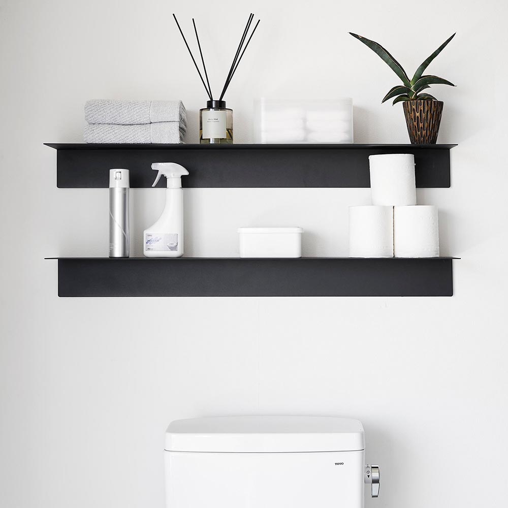 壁にあいた穴が目立ちにくい石こうボードピンで取り付けできる、幅90cmのシンプルなウォールラックです。石こうボードピンで取り付けベースを壁面に取り付けて、ラック本体を差し込むだけで設置完了。木ネジで取り付けることも可能です。L字型のシンプルなデザインなので、リビング・キッチン・ランドリー・玄関・トイレなど、場所を選ばずに活躍してくれます。ラックは奥行僅か15cmと省スペースながら、様々な物が置けて収納力も充実。また、マグネットがつくスチール製なので、メモや小物をペタッと貼りつけることができて便利です。