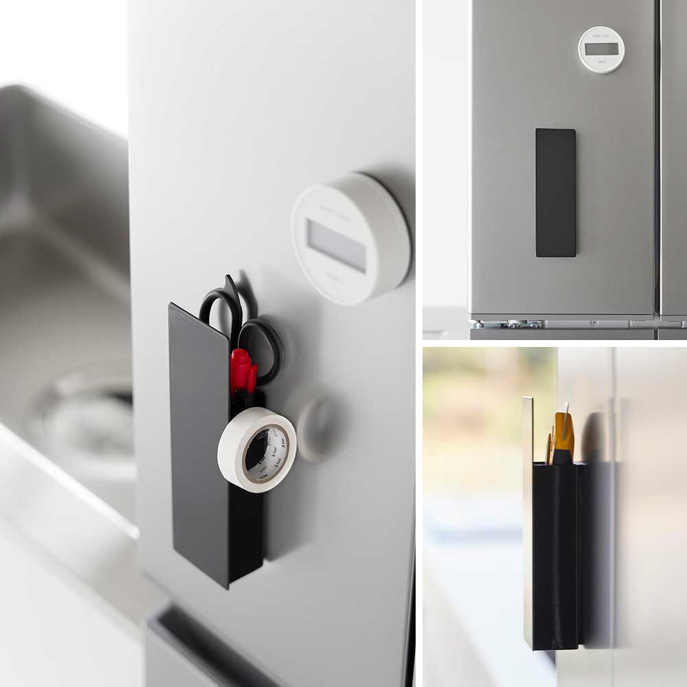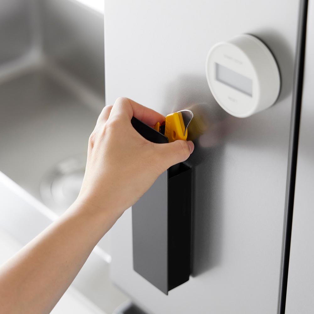 キッチンや玄関でよく使う ネットショッピングで届いた段ボールの開梱や、食品袋の開封をする時に使うカッターやハサミを、生活感を隠しながら使いやすい場所に収納できる、コンパクトでスタイリッシュなマグネットホルダーです。 マグネットのつく冷蔵庫や玄関扉などにペタッと貼り付けておけば、必要な時にすぐにカッターやハサミを手に取れます。 ホルダーの前面は目隠し用の板で高くなっており、見える場所にあるとどうしても生活感が出てしまうカッターやハサミを上手に隠してくれます。 マスキングテープや輪ゴムなどを引っ掛けて収納できるフックが1つ付属しています。 ![]() ![]() ![]() ![]() ![]() ![]() ![]() ![]() ![]() ![]() ![]() |