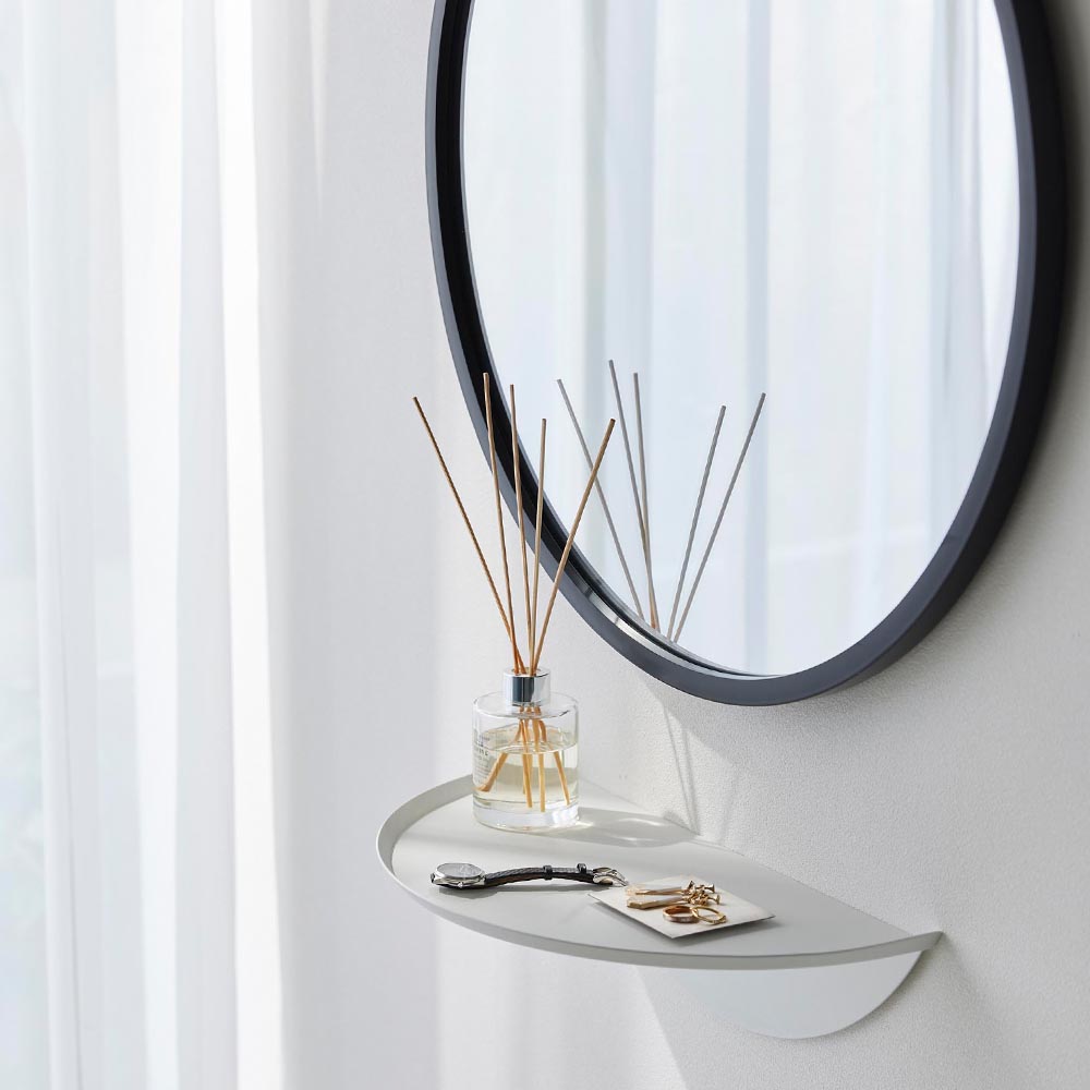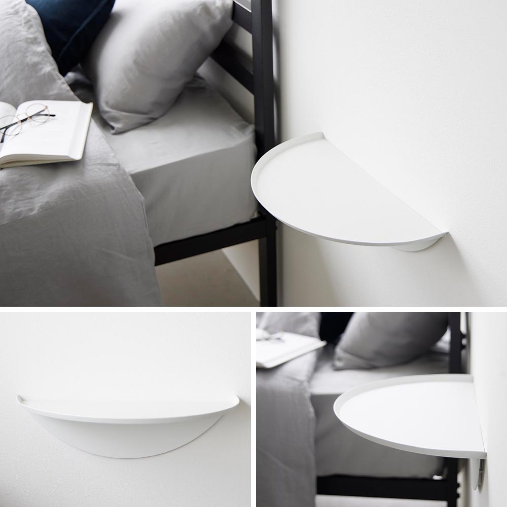 ベッドサイドや玄関で! 壁の穴が目立ちにくい石こうボードピンで手軽に取り付けられる、浮かせるサイドテーブルです。 壁面のお好みの位置に設置できるからアイデア次第で用途は様々!ベッドルームやリビングで、時計やスマホ、リモコンなどを置けるサイドテーブルとしてご活用いただくのはもちろんのこと、玄関にも、鍵や普段使いのアクセサリーなど、ちょっとした小物を置けるこのようなミニテーブルがあると大変便利です。 観葉植物やお気に入りのインテリアを飾るディスプレイ棚にするのもオススメです。 このサイドテーブルは印象に残る半円状のスタイリッシュな外観。脚がなく、浮かせているのですっきりかつラグジュアリーな空間に。床のお掃除もラクラクです。 石こうボードピン以外に、木ネジでの取り付けも可能です。 ![]() ![]() ![]() ![]() ![]() ![]() ![]() ![]() ![]() ![]() ![]() ![]() ![]() ![]() |