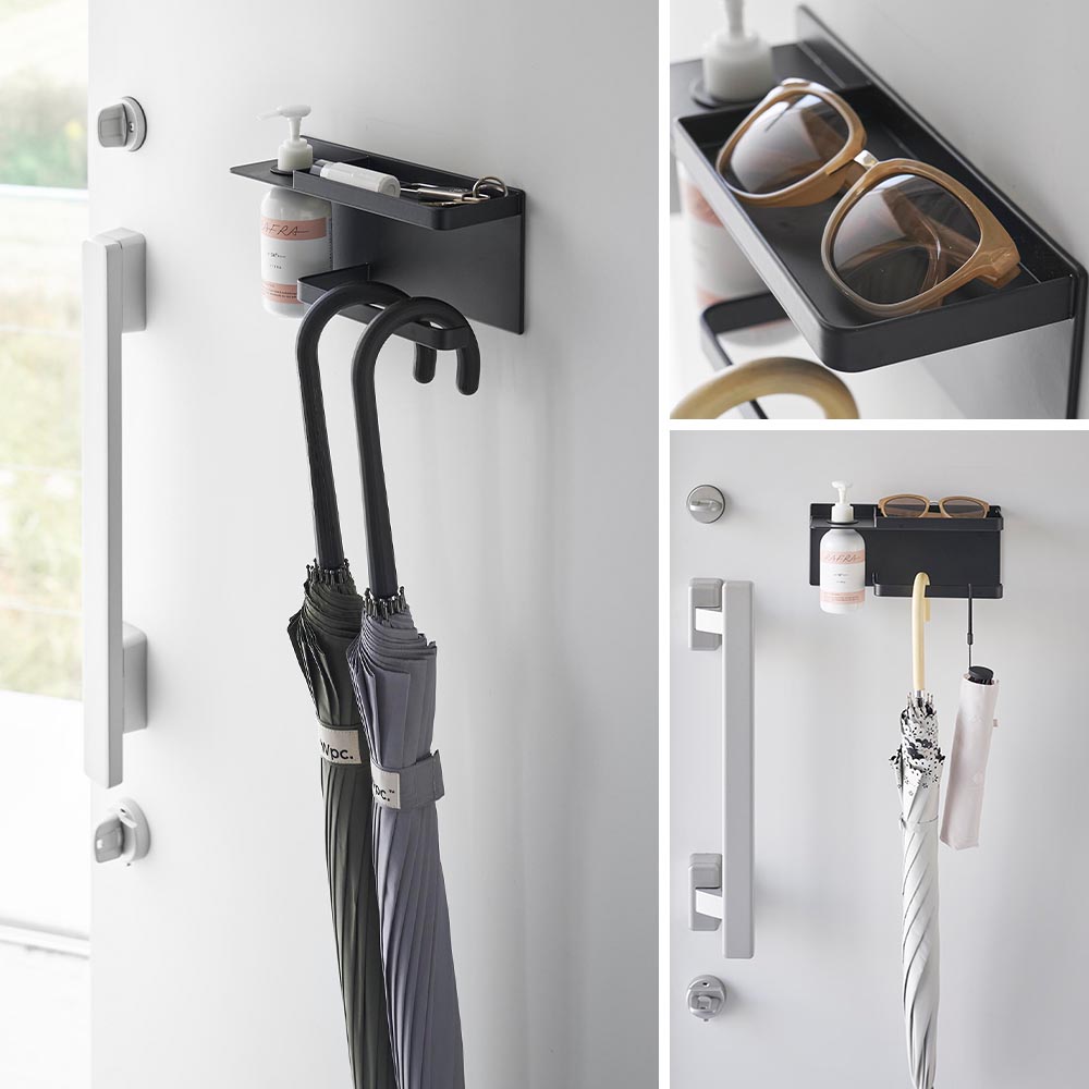 お出かけ前にサッとUV対策 マグネットで玄関扉に簡単取り付けできる収納ホルダー。 お出かけ前に必要なUV対策グッズを、ポンプホルダー・ハンガー・トレーへ一括収納できます。 ポンプホルダーは、ポンプ式の日焼け止めクリームを設置し、そのままプッシュできます。 ハンガー部分には、日傘や折り畳み傘を掛けられます。 ストールやアームカバーを掛けておけば、サッと取り出しやすいです。 トレー部分には、サングラスの他に鍵や印鑑などの小物を収納できます。 慌ただしい外出前に、玄関でいっぺんにUV対策できる便利な収納ホルダーです。 ![]() ![]() ![]() ![]() ![]() ![]() ![]() ![]() ![]() ![]() ![]() |