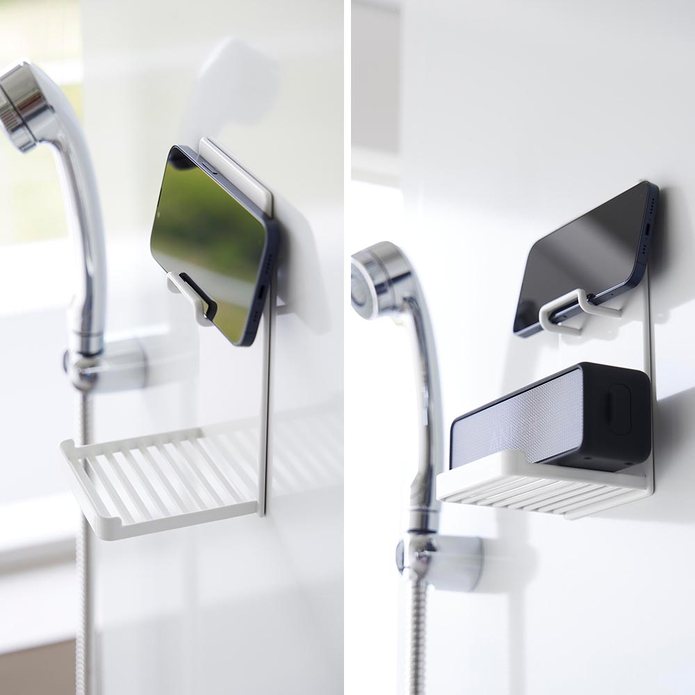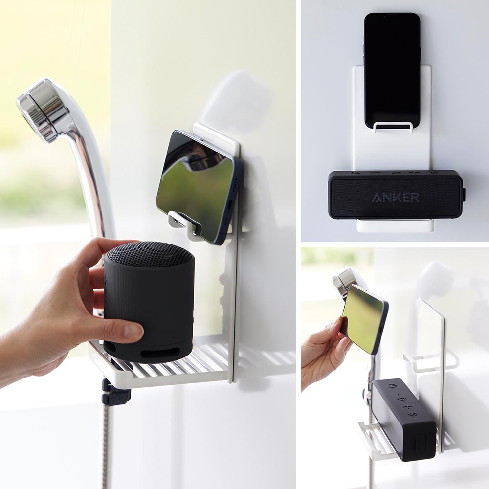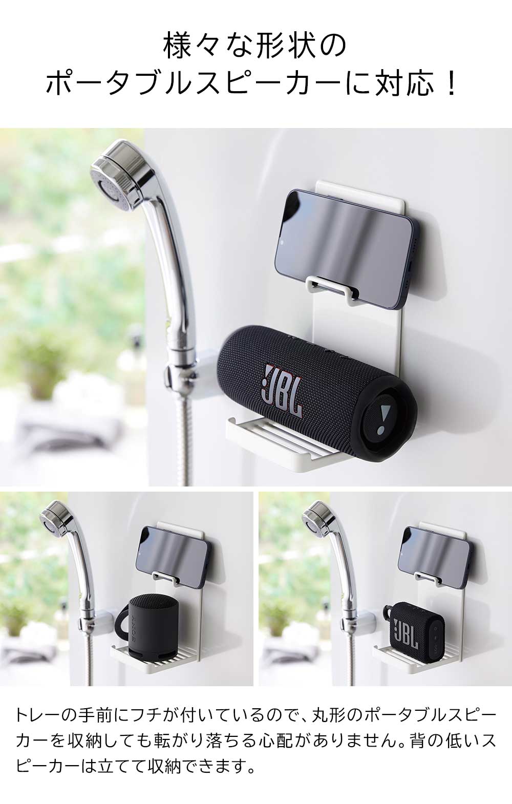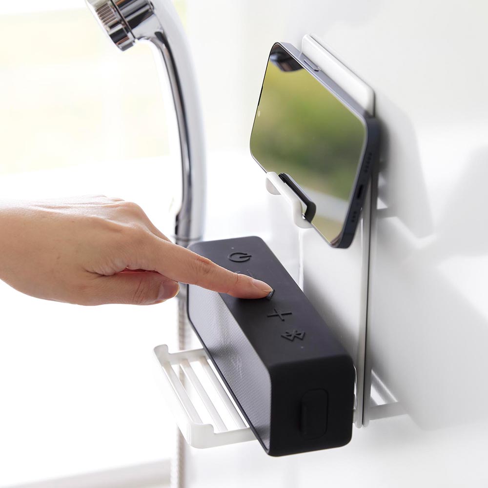 入浴時に置き場所に困る 音楽や映像を流しながらのお風呂タイムは格別なもの。でも、水濡れなどの不安もあり、スマホやポータブルスピーカーの置き場所に困っている方も多いのではないでしょうか? こちらの商品をマグネットで浴室の壁面に貼り付け設置すれば、そのような悩みから解放されます。 本体下には、横長や丸形、背の低い物など、様々な形状のポータブルスピーカーを安定して収納できるトレーがあり、本体上にはスマホを置けるホルダーが付いています。スマホは縦横どちらの向きでも収納可能です。 水濡れを防げる場所や操作しやすい場所など、お好みの場所を自由に選んで設置できるので、安心してポータブルスピーカーやスマホを浴室に持ち込めます。 ![]() ![]() ![]() ![]() ![]() ![]() ![]() ![]() ![]() ![]() ![]() ![]() |