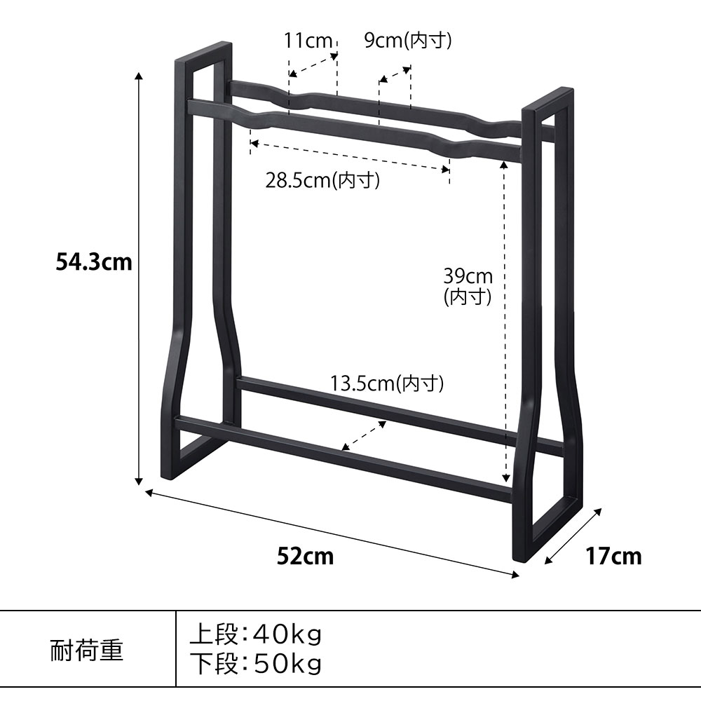 ■耐荷重制限内であっても25kgを超えるダンベルや可変式のプレートなどを1箇所に集中して収納しないで下さい。