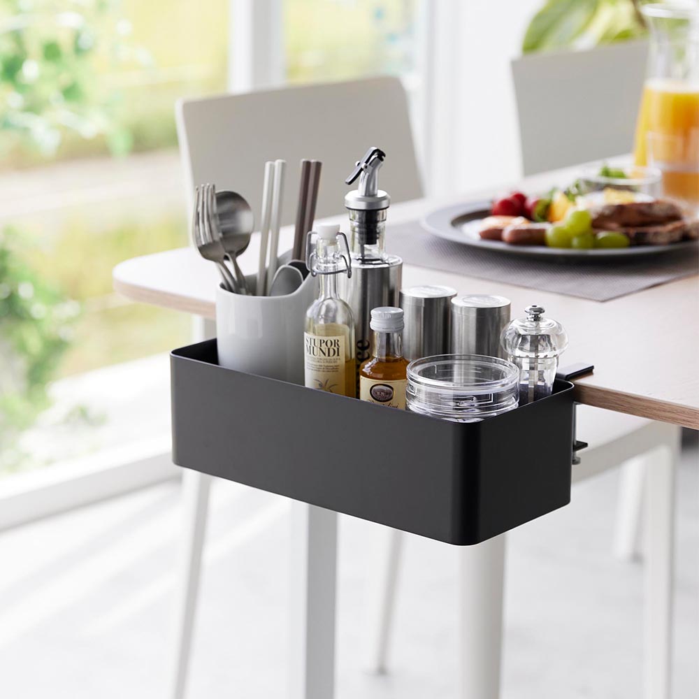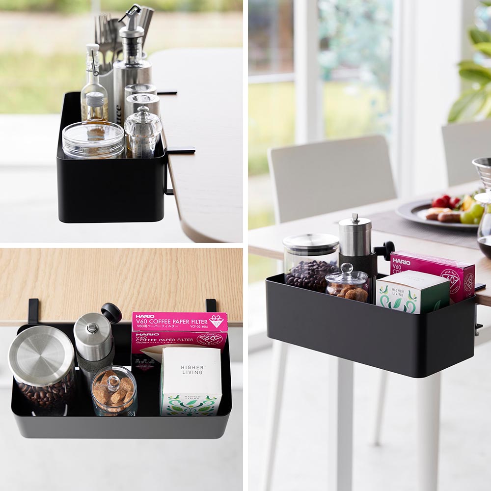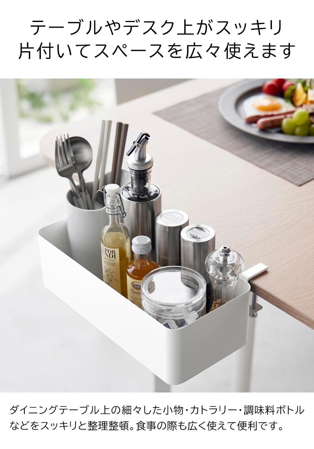 テーブルやデスク上が 散らかる小物類を片付けて、テーブルやデスク上を広く使えるバスケットです。テーブルやデスクの側面に挟み込んで調節ネジで取り付けるだけで簡単に設置完了。ダイニングテーブル上の細々した小物・カトラリー・調味料ボトルをひとまとめに収納すれば、食事をする時も広く使えて便利です。自宅やオフィスのデスクなどでは、文房具類を整頓したり、転倒が心配な飲み物の収納におすすめ。デスク上が片付くと、勉強や仕事の効率も上がりますね!浮かせることで場所をとらず、テーブルやデスク上が汚れてもお手入れしやすいのも嬉しいポイントです。また、リビングテーブルに取り付ければ、散らかりがちなリモコンやメガネ、ボックスティッシュなどの定位置が決まって探す手間が省けます。底面からケーブルを通せるので、タブレット端末やゲーム機などを充電しながら収納できて便利です。 ![]() ![]() ![]() ![]() ![]() ![]() ![]() ![]() ![]() ![]() ![]() ![]() ![]() ![]() |