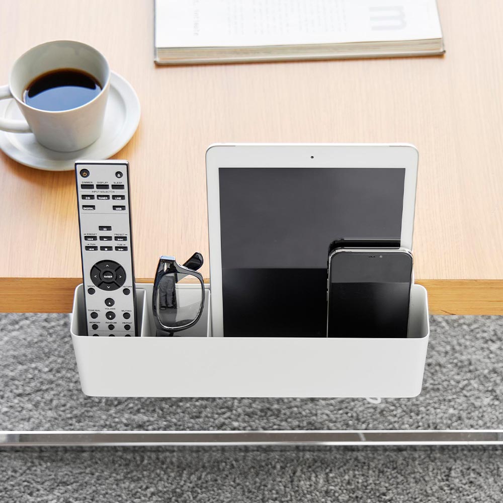 調節ネジで簡単取り付け! テーブルやデスクの上で散らかりがちな、リモコン・メガネ・スマホ・タブレット端末・ゲーム機・文房具などを、テーブルやデスクの横にまとめて収納できる便利なスチール製ラックです。 天板に穴をあける必要はなく、調節ネジだけで簡単に取り付けられます。 マグネットでラック内を自由に仕切れる可動式仕切り板が2枚付いており、収納するアイテムの大きさに合わせて綺麗に仕切れます。 ラックの底面には充電ケーブルを通せる穴があり、充電しながらの収納も可能!この穴はケーブルをラック内にキープできる形状なので、ケーブルが迷子になりません。 文房具やガジェット以外に、ダイニングテーブル横に取り付けて、調味料やカトラリーをまとめて収納するのも便利です。 ![]() ![]() ![]() ![]() ![]() ![]() ![]() ![]() ![]() ![]() ![]() ![]() ![]() |