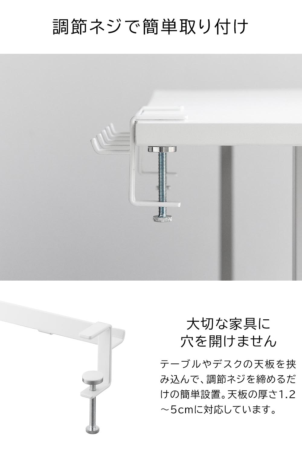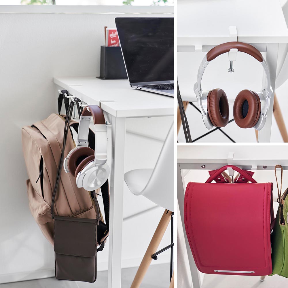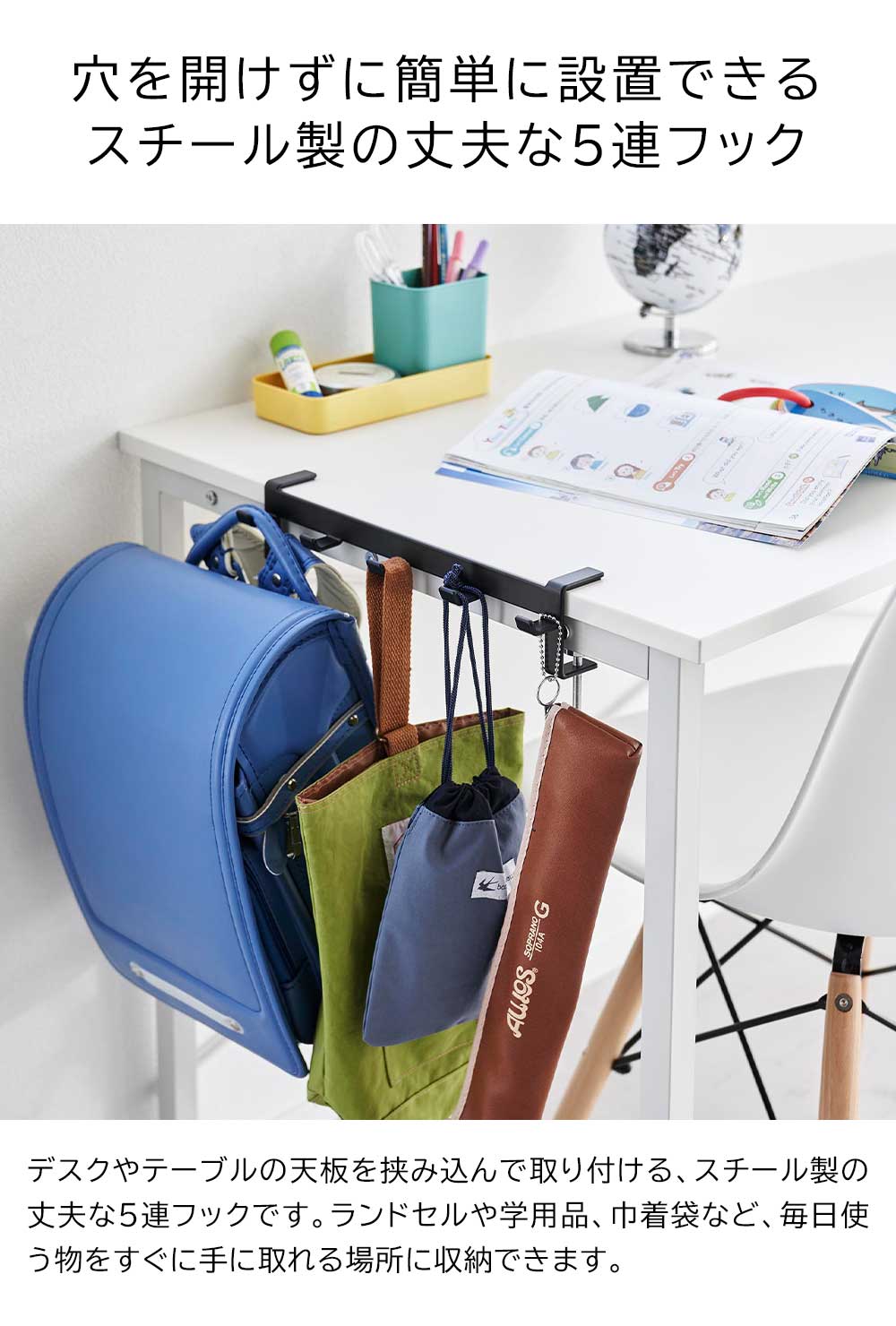 調節ネジで簡単取り付け リュックやランドセル、レッスンバッグや巾着袋など、すぐに手に取れる場所に引っ掛けておきたいアイテムは意外と多いもの。 それらをテーブルやデスクの横にまとめて収納できる、5連の丈夫なスチール製フックです。 テーブルを挟み込んで調節ネジで固定するだけの簡単設置なので、大切な家具に穴を開けることなく、お手軽に引っ掛け収納スペースを増やせます。 ヘッドフォンやヘッドセットなど、デスク周りにあると嬉しい小物を掛ける場所にするのも便利です。 ![]() ![]() ![]() ![]() ![]() ![]() ![]() ![]() ![]() ![]() ![]() ![]() |