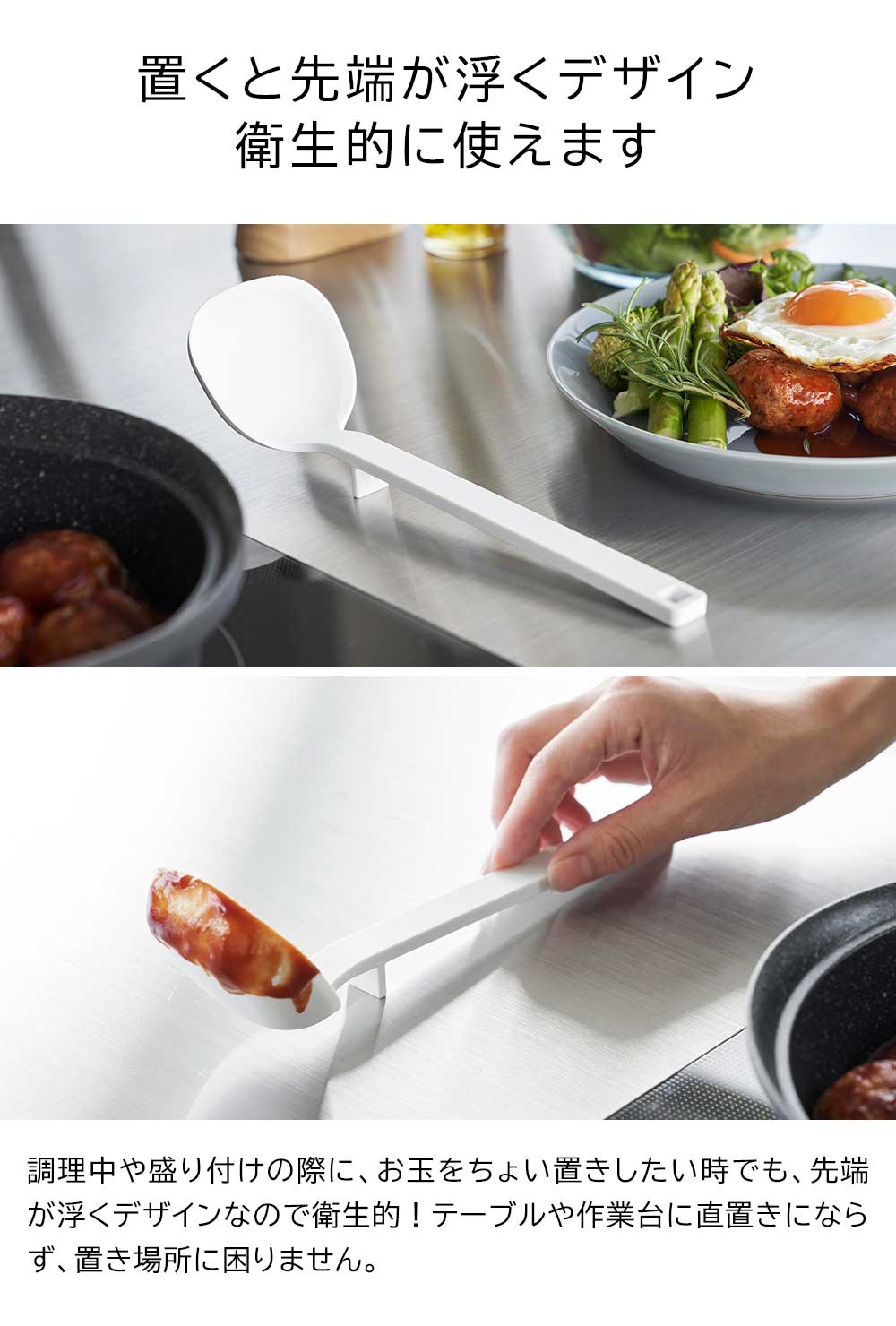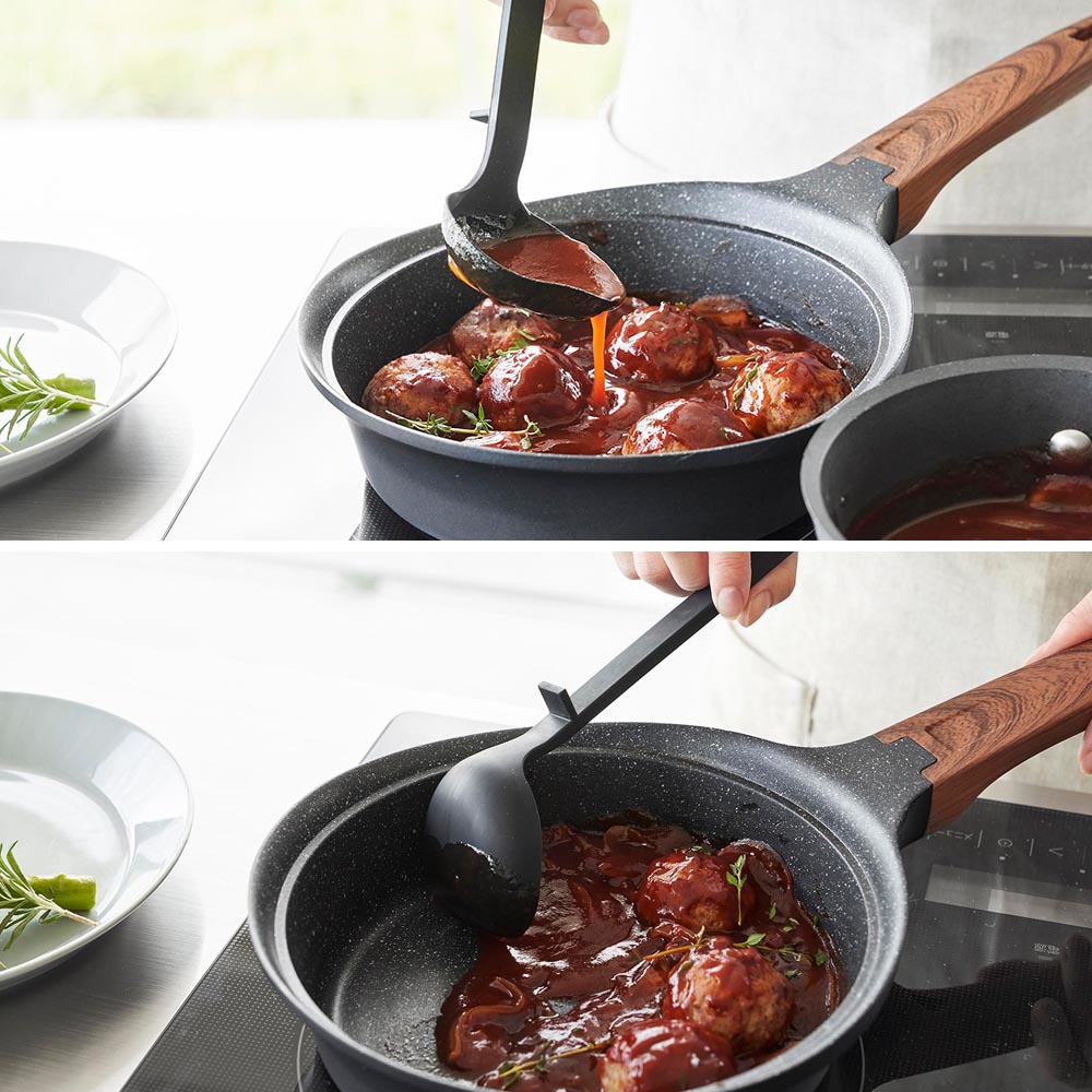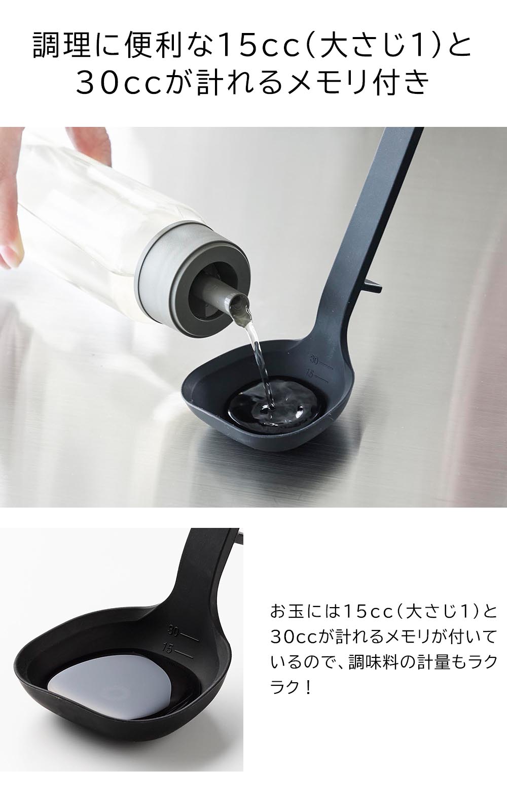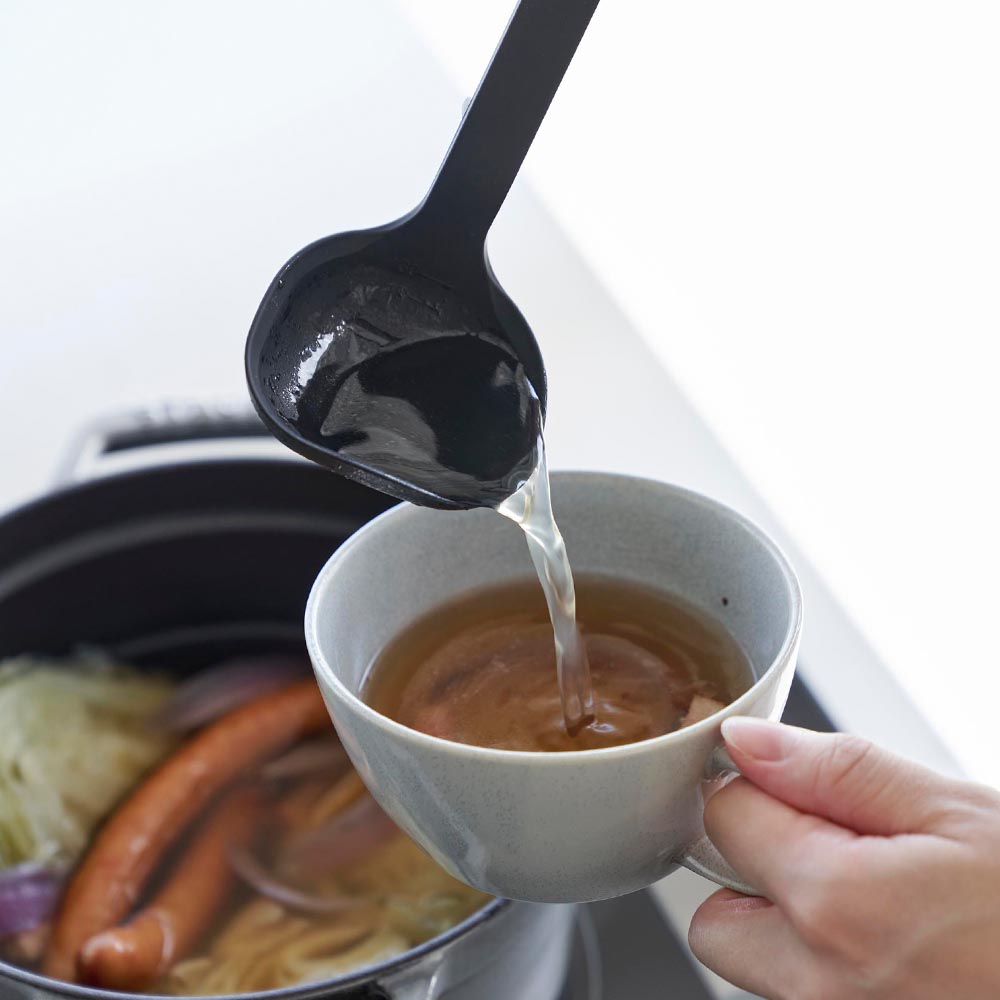 熱に強いシリコーン製 コンパクトで使いやすいサイズのシリコーン製お玉です。シリコーン製でしなやかなので、鍋やフライパンなどを傷つけず、鍋肌にフィットするので食材を残さず綺麗に掬えます。熱にも強いので高温調理の際も活躍してくれます。先端に角がある形状で、右からも左からも注ぎやすく便利です。小さな鍋の中や盛り付けの際にも小回りの利くコンパクトなサイズ。お玉をちょい置きしたい時は、先端が浮くデザインで衛生的!テーブルや作業台に直置きにならずに済むので置き場所に困りません。お玉には15cc(大さじ1)と30ccが量れるメモリ付き。持ち手とヘラが一体型で洗いやすく、食洗機も使えるのでお手入れもラクラクです。 ![]() ![]() ![]() ![]() ![]() ![]() ![]() ![]() ![]() ![]() ![]() ![]() ![]() ![]() ![]() ![]() |