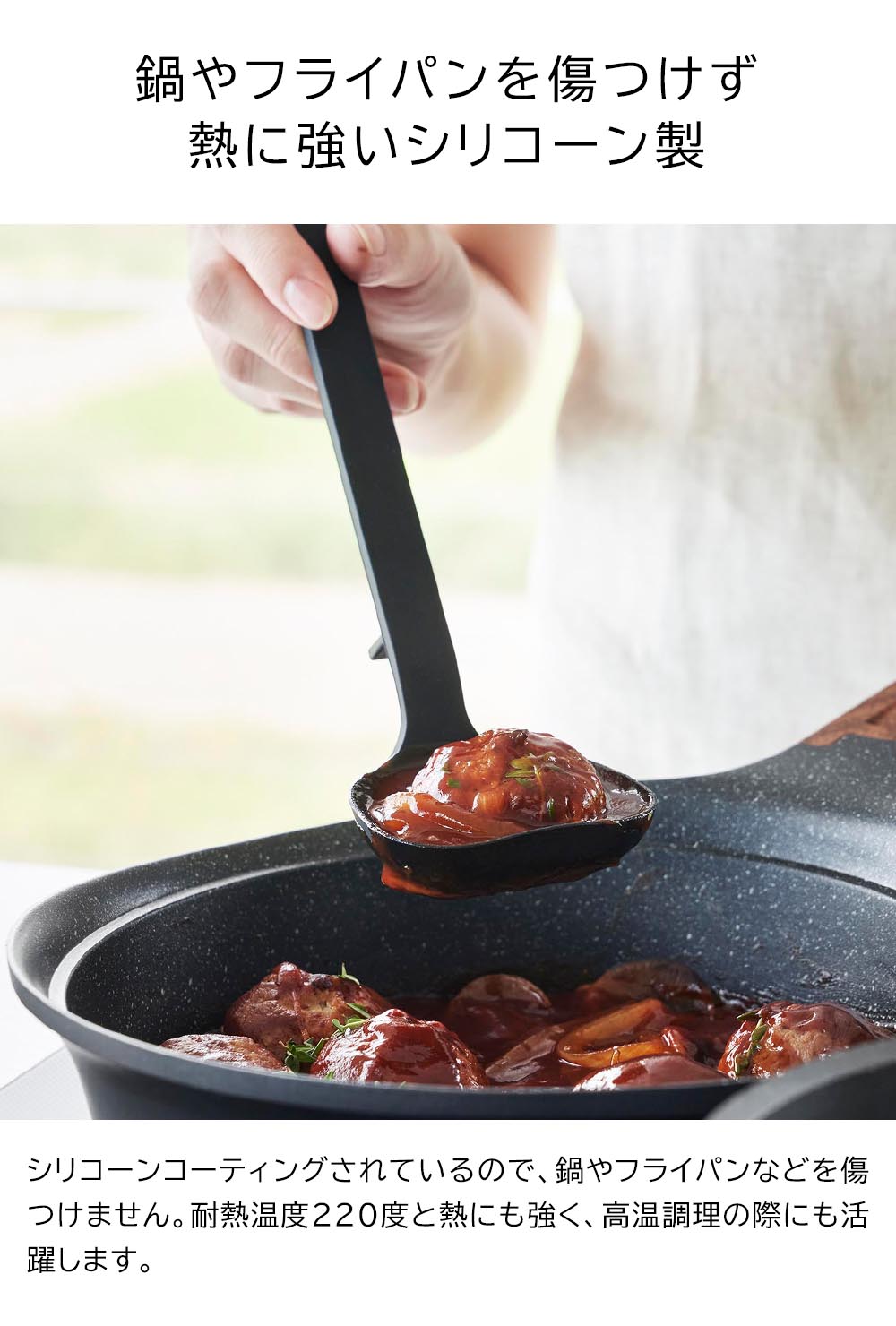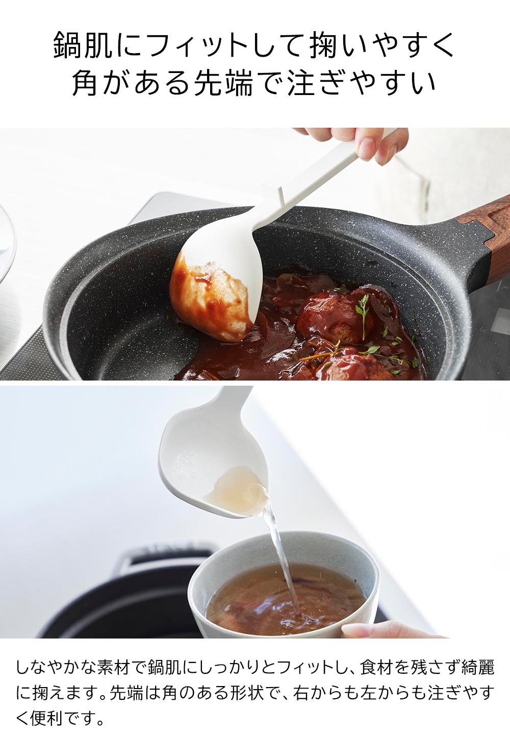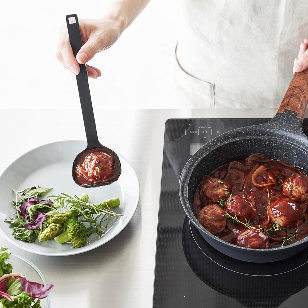 熱に強いシリコーン製 コンパクトで使いやすいサイズのシリコーン製お玉です。シリコーン製でしなやかなので、鍋やフライパンなどを傷つけず、鍋肌にフィットするので食材を残さず綺麗に掬えます。熱にも強いので高温調理の際も活躍してくれます。先端に角がある形状で、右からも左からも注ぎやすく便利です。小さな鍋の中や盛り付けの際にも小回りの利くコンパクトなサイズ。お玉をちょい置きしたい時は、先端が浮くデザインで衛生的!テーブルや作業台に直置きにならずに済むので置き場所に困りません。お玉には15cc(大さじ1)と30ccが量れるメモリ付き。持ち手とヘラが一体型で洗いやすく、食洗機も使えるのでお手入れもラクラクです。 ![]() ![]() ![]() ![]() ![]() ![]() ![]() ![]() ![]() ![]() ![]() ![]() ![]() ![]() ![]() ![]() |