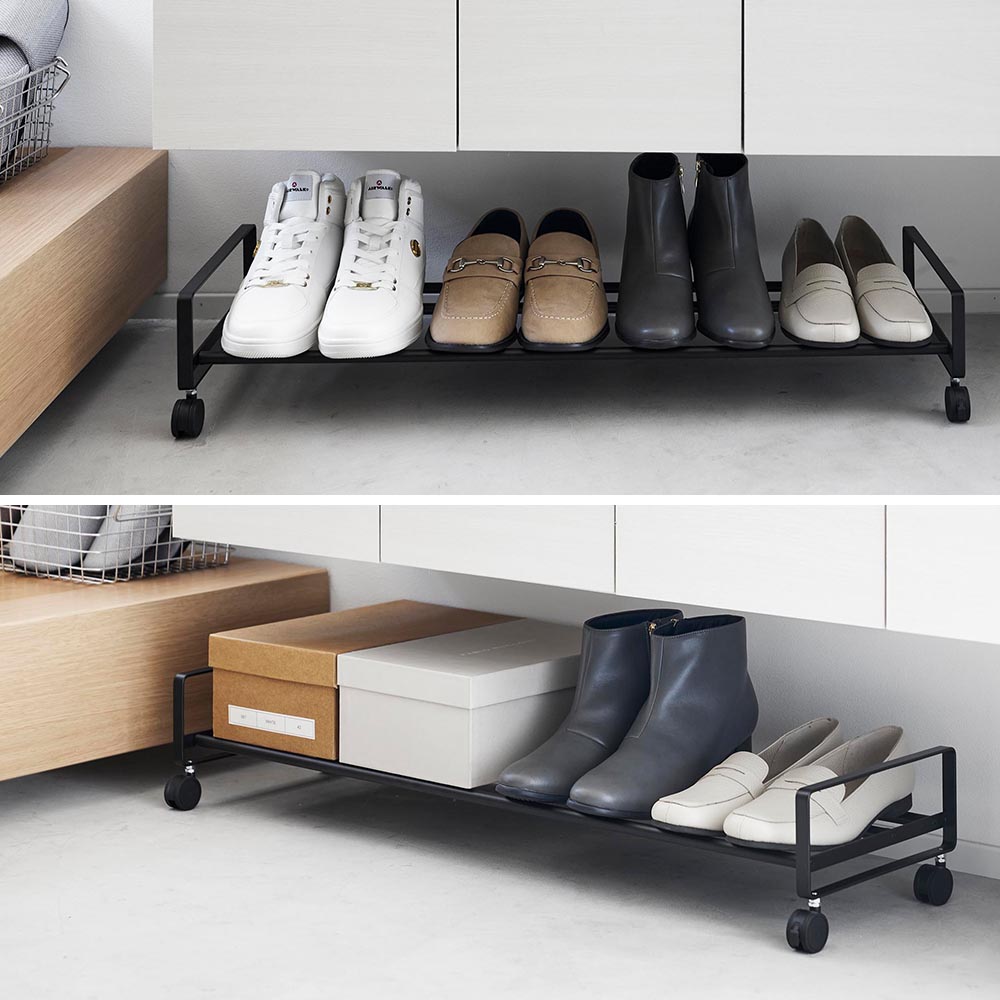 玄関で散らかりがちな靴を 下駄箱下の隙間に収納できるシューズラックです。こちらのラックを使うことで、下駄箱に入りきらなくなった靴や、毎日履くから下駄箱にしまうのが面倒な通勤・通学用の靴などを、下駄箱下にまとめて収納できます。下駄箱下の隙間に収まるスリムなサイズなのに、大人用の靴が4~5足まで収納可能。また、キッズシューズやベビーシューズ、シューズボックスも一緒に収納できます。出し入れ簡単なキャスター付きなので、お出かけ時に靴をサッと取り出せて便利。玄関のお掃除の際に移動しやすいのも嬉しいポイントです。キャスターは不要に動かないようにストッパーも付いています。 ![]() ![]() ![]() ![]() ![]() ![]() ![]() ![]() ![]() ![]() ![]() ![]() ![]() |