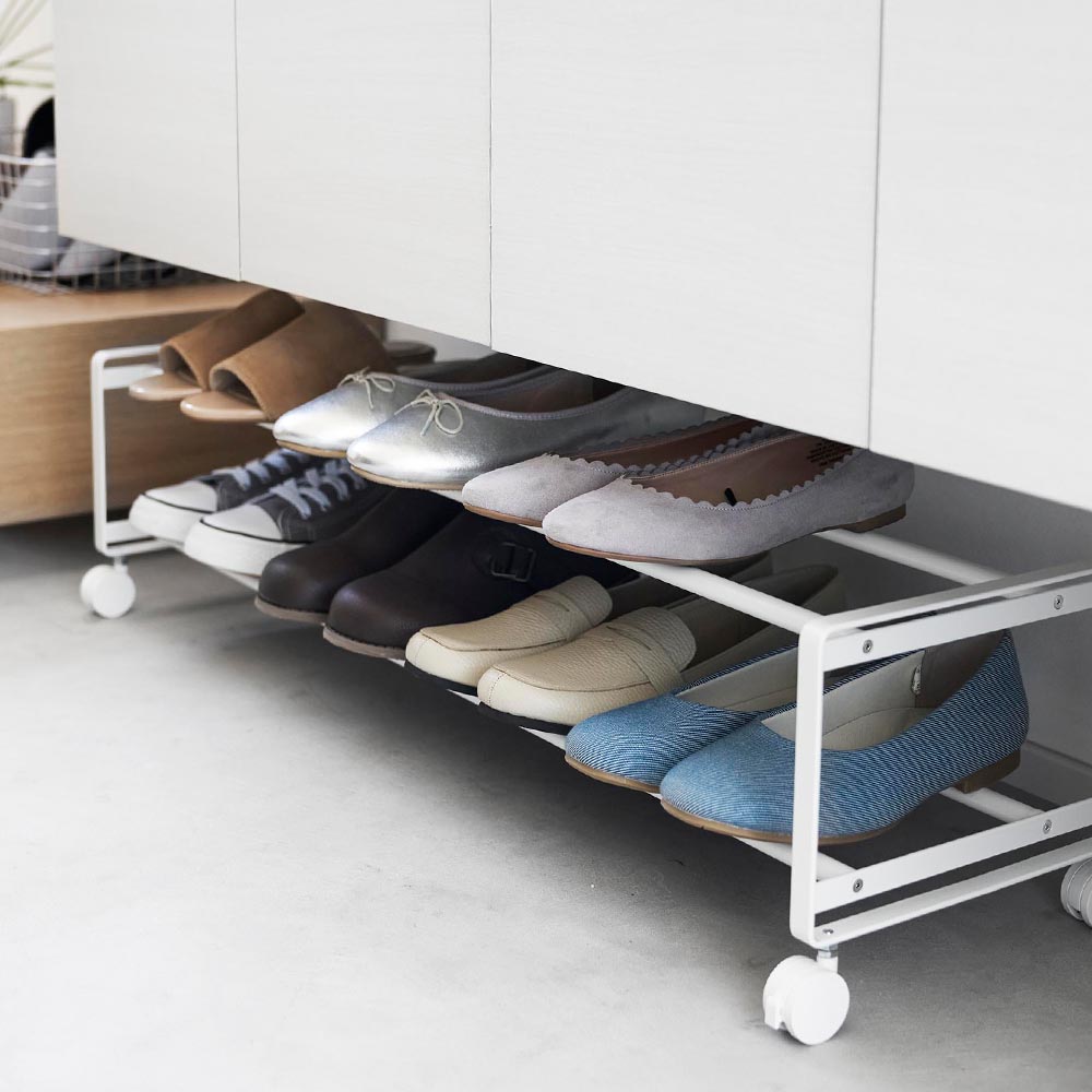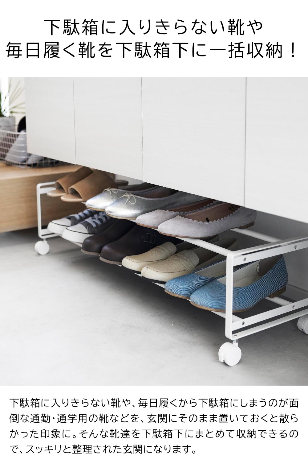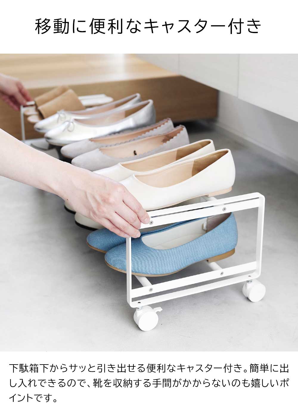 玄関で散らかりがちな靴を 下駄箱下の隙間に収納できる2段のシューズラックです。こちらのラックを使うことで、下駄箱に入りきらなくなった靴や、毎日履くから下駄箱にしまうのが面倒な通勤・通学用の靴などを、下駄箱下にまとめて収納できます。下駄箱下の隙間に収まるスリムなサイズなのに、大人用の靴が8~10足まで収納可能。出し入れ簡単なキャスター付きなので、お出かけ時に靴をサッと取り出せて便利。玄関のお掃除の際に移動しやすいのも嬉しいポイントです。キャスターは不要に動かないようにストッパーも付いています。 ![]() ![]() ![]() ![]() ![]() ![]() ![]() ![]() ![]() ![]() ![]() |