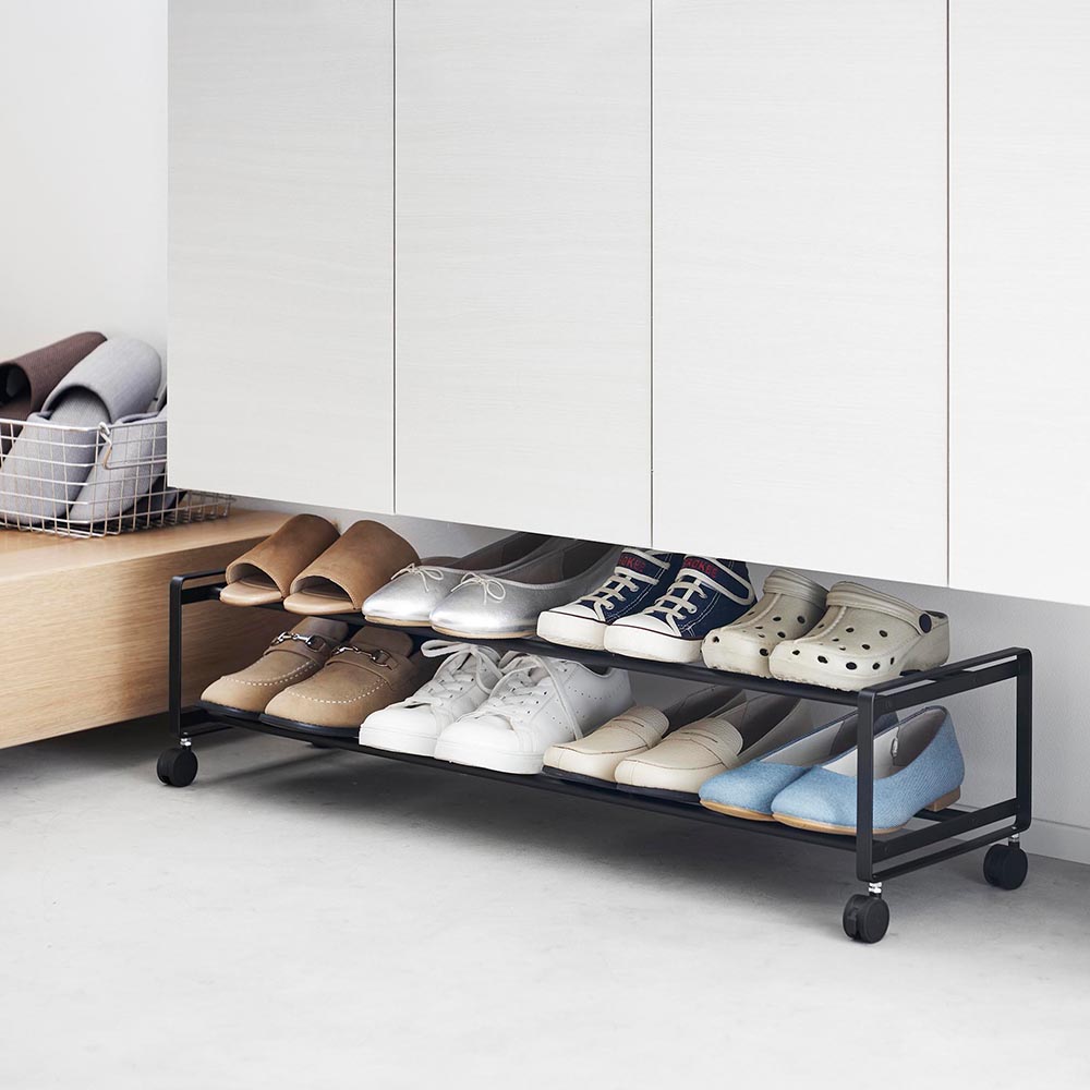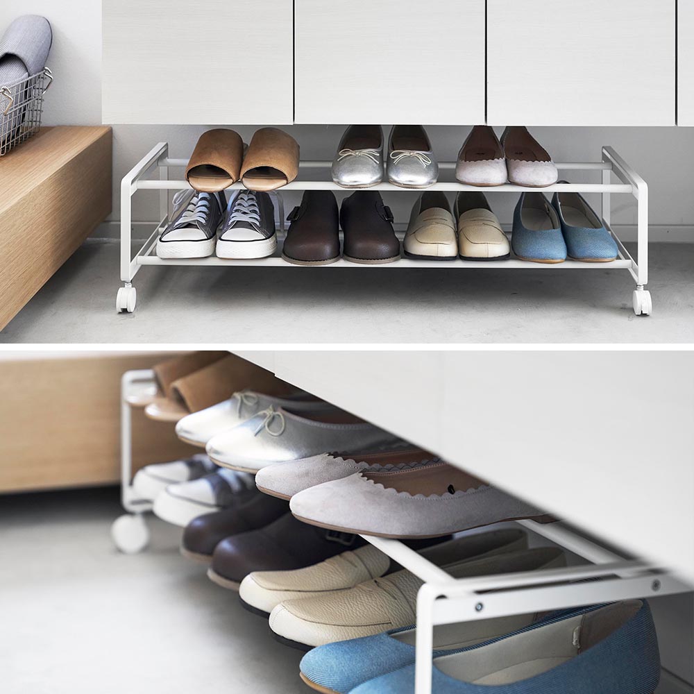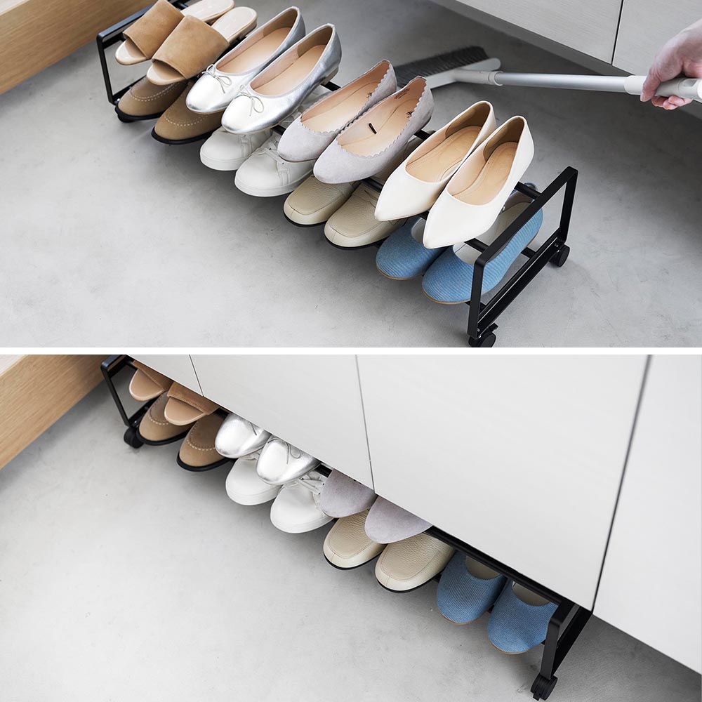 玄関で散らかりがちな靴を 下駄箱下の隙間に収納できる2段のシューズラックです。こちらのラックを使うことで、下駄箱に入りきらなくなった靴や、毎日履くから下駄箱にしまうのが面倒な通勤・通学用の靴などを、下駄箱下にまとめて収納できます。下駄箱下の隙間に収まるスリムなサイズなのに、大人用の靴が8~10足まで収納可能。出し入れ簡単なキャスター付きなので、お出かけ時に靴をサッと取り出せて便利。玄関のお掃除の際に移動しやすいのも嬉しいポイントです。キャスターは不要に動かないようにストッパーも付いています。 ![]() ![]() ![]() ![]() ![]() ![]() ![]() ![]() ![]() ![]() ![]() |