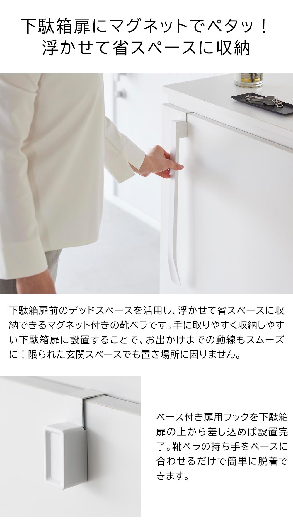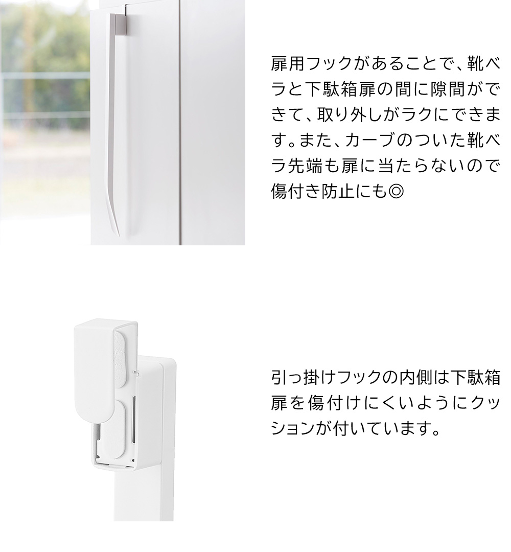 下駄箱扉に簡単に設置 下駄箱扉に取り付けて浮かせて収納できるマグネット付きの靴ベラです。下駄箱扉の上からベース付き扉用フックを引っ掛けて、マグネット付きの靴ベラをベース部分に付けるだけなので、脱着も簡単。下駄箱扉前のデッドスペースを活用することで省スペースに収納できます。扉用フックの内側は下駄箱扉に傷をつけにくい親切なクッション付きです。 下駄箱扉に設置することでパッと手に取りサッと収納できて、お出かけまでの動線がスムーズに!靴ベラは、椅子に座っても立ったままでも使いやすい長さです。 ![]() ![]() ![]() ![]() ![]() ![]() ![]() ![]() ![]() ![]() ![]() ![]() ![]() |