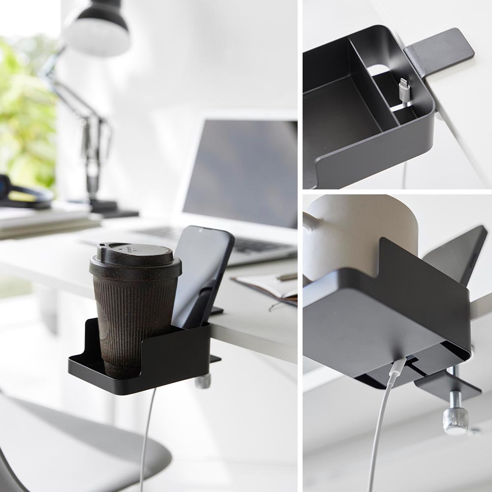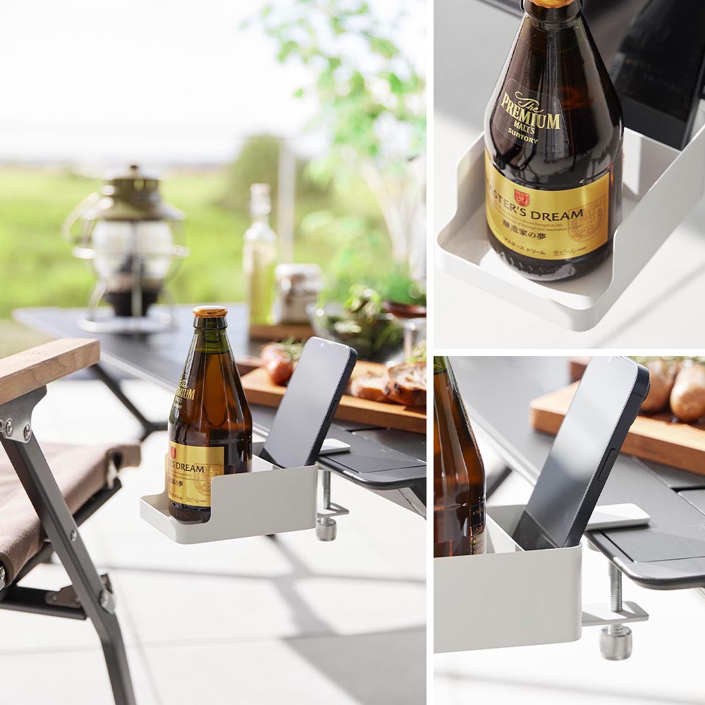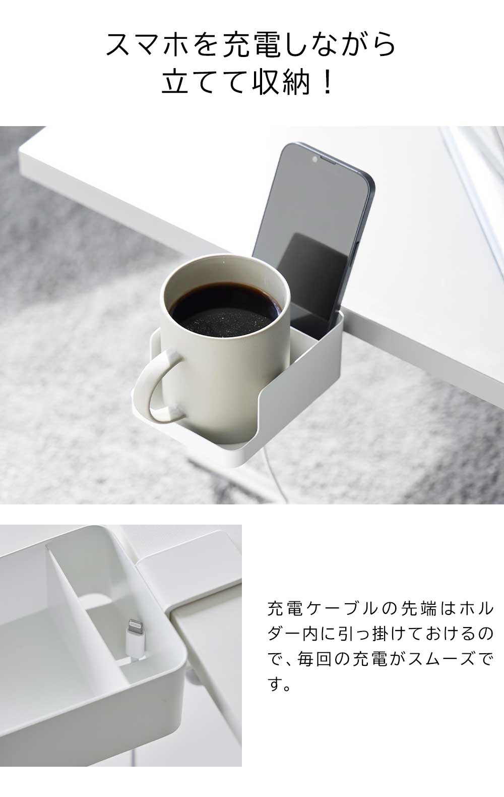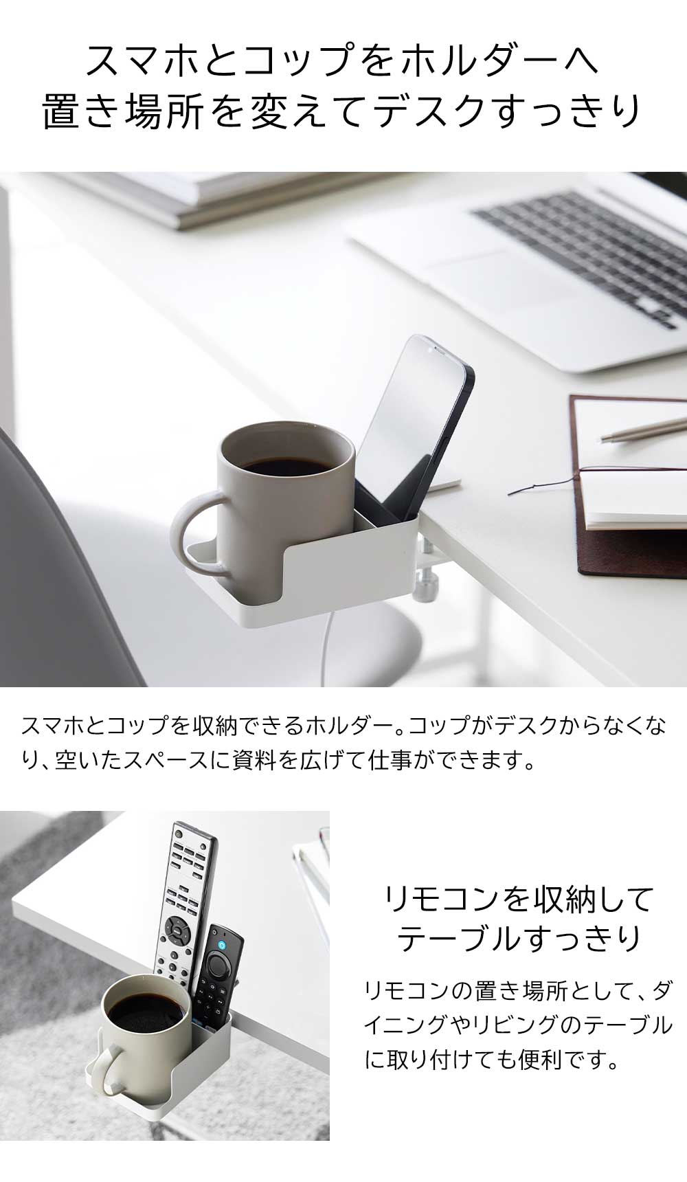 スマホとコップの指定席 テーブル横やチェアの肘置きに挟んで設置可能なドリンクホルダー。大きめの調節ネジ1つでしっかりと簡単に取り付けでき、デスクで置き場所に困るコップとスマホの収納場所を確保できます。 持ち手付きのコップが出し入れしやすい設計で、両サイドの縁により、コップが転倒しにくくなっています。スマホは立ててスリムに収納!スマホを充電しながら収納できて便利です。充電ケーブルの先端はホルダー内に引っ掛けておけるので、毎回の充電がスムーズです。スマホ以外にもリモコンの収納として、ダイニングやリビングのテーブルに取り付けても◎テーブルが広々と使えます。キャンプやバーベキューなどアウトドアテーブルやチェアに取り付けるのもおすすめです。 ![]() ![]() ![]() ![]() ![]() ![]() ![]() ![]() ![]() ![]() ![]() |
