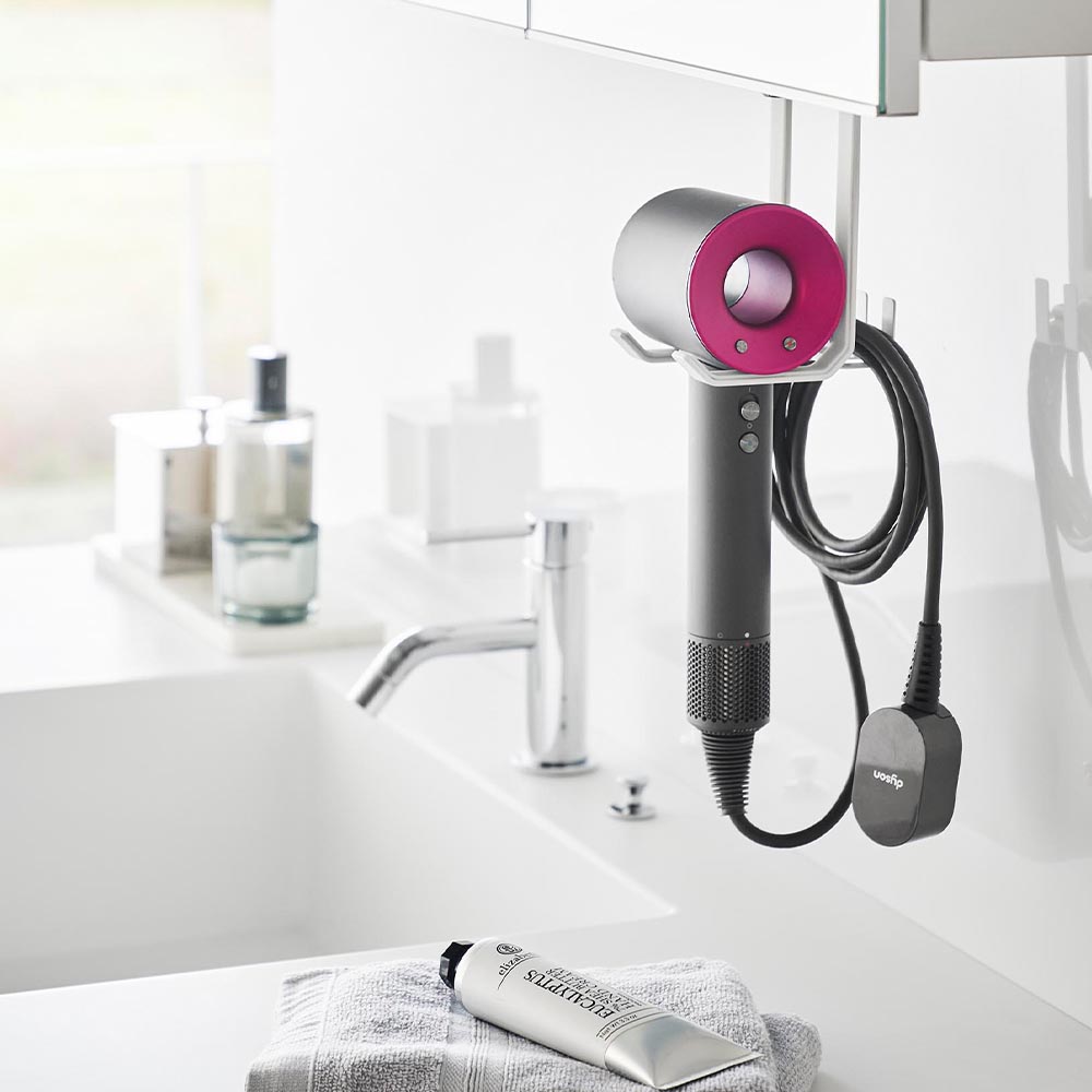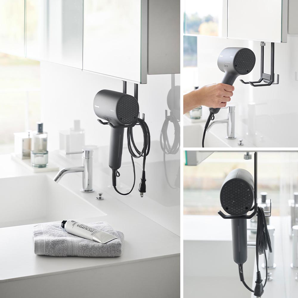 サッと手に取れる棚下に設置 ランドリールームや洗面所の棚下に取り付ける、ヘアドライヤーハンガーです。 棚板に挟み込みネジでしっかりと固定してドライヤーを引っ掛けるだけの簡単収納。使いたい時にすぐ取り出せて便利です。 一般的なドライヤーからT字型ドライヤーまで対応。ドライヤーの収納部には傷防止のシリコーンクッションが付いており、安心して収納できます。 背面に付属のコードホルダーを取り付ければ、ゴチャつく電源コードやプラグもスッキリまとめられます。 ![]() ![]() ![]() ![]() ![]() ![]() ![]() ![]() ![]() ![]() ![]() ![]() ![]() |