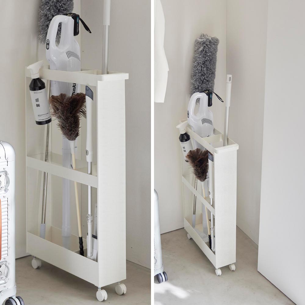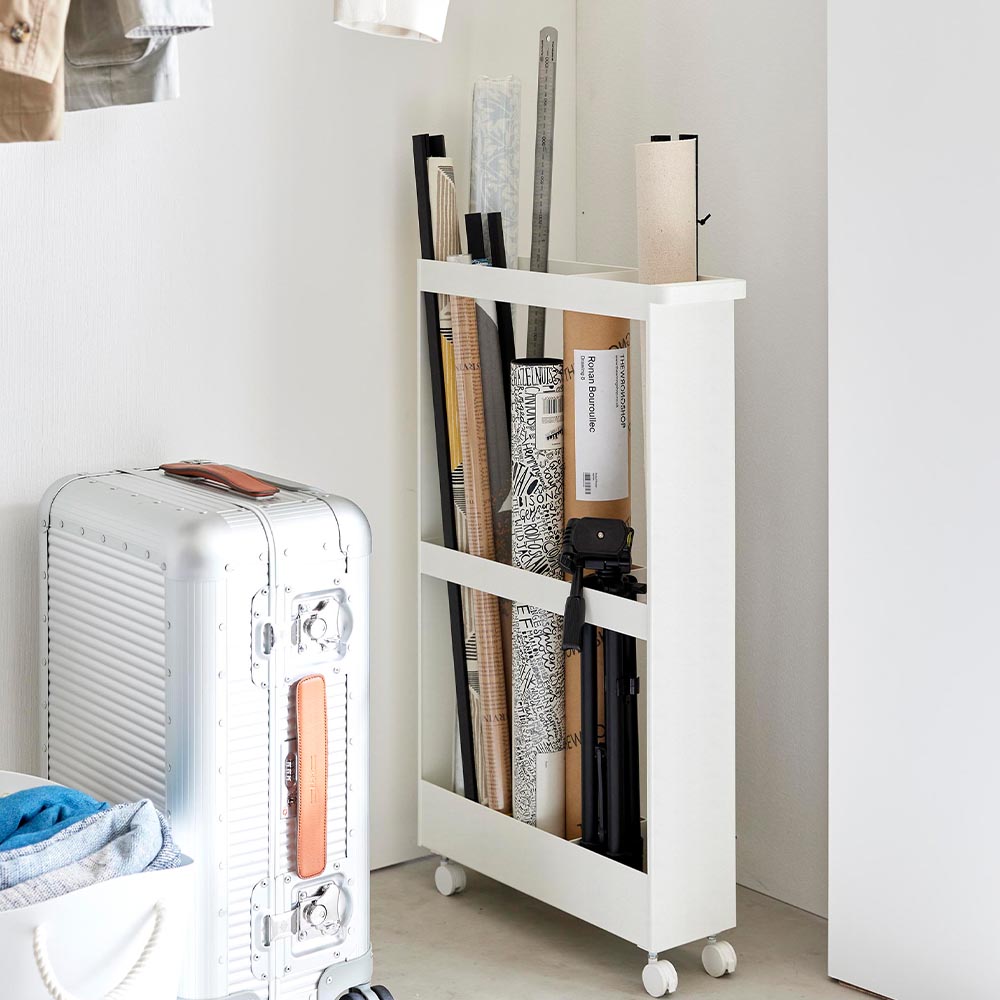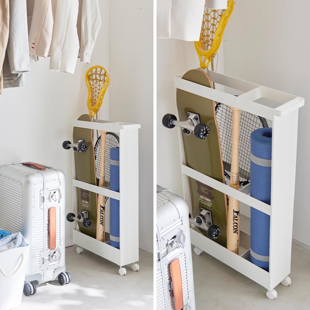 収納しづらい長物を 丸めたポスターやタペストリーなどの筒状の物、ラケットやバットなどの長さのある物といった、様々な長物を綺麗にまとめられる収納ワゴンです。 幅13cmのスリムな形状だからクローゼット内の隙間を活用して収納できます。 ハンドルとキャスターが付いているので出し入れもラクラク。よく使うお掃除道具を入れても便利に使えます。 付属のスパナでキャスターを取り付けるだけの簡単組み立てで、購入後すぐに使用できます。 ![]() ![]() ![]() ![]() ![]() ![]() ![]() ![]() ![]() ![]() ![]() ![]() |