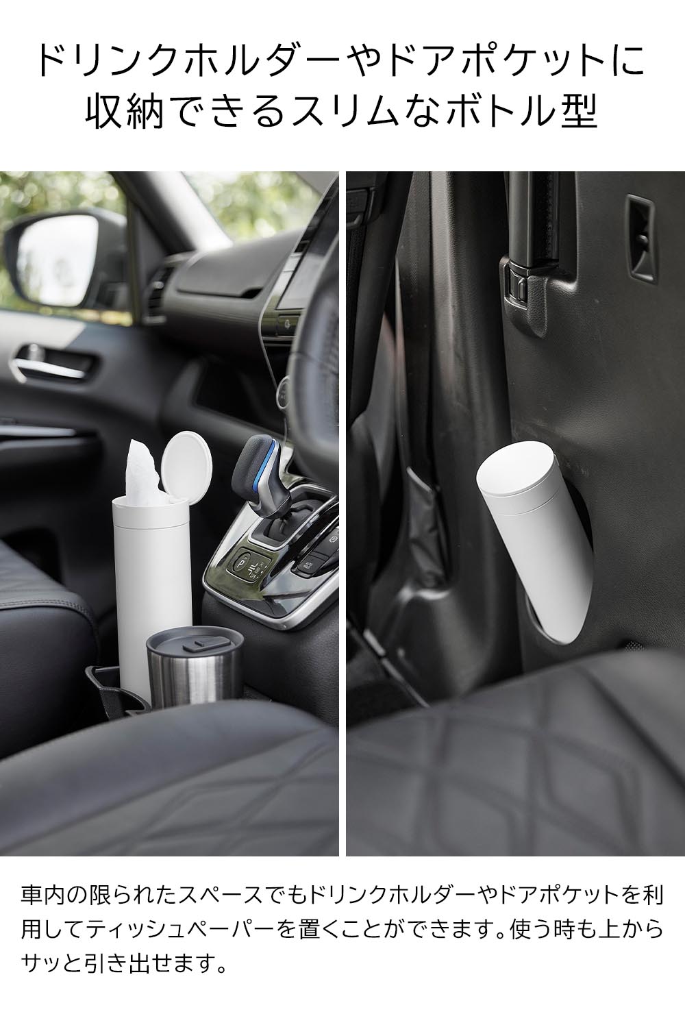 ドリンクホルダーに収まる 車のドリンクホルダーやドアポケットに収納できるボトル型のティッシュケースです。 市販のティッシュペーパーを筒状に丸めて詰め替えます。 ティッシュペーパーがスリムな形状に収まるので、場所を取らずスッキリと置くことができます。 車内だけでなく、洗面所など限られたスペースやリビングでの使用もおすすめです。 蓋を閉めれば、お子さまやペットのいたずら防止にも。 ![]() ![]() ![]() ![]() ![]() ![]() ![]() ![]() ![]() ![]() ![]() ![]() |