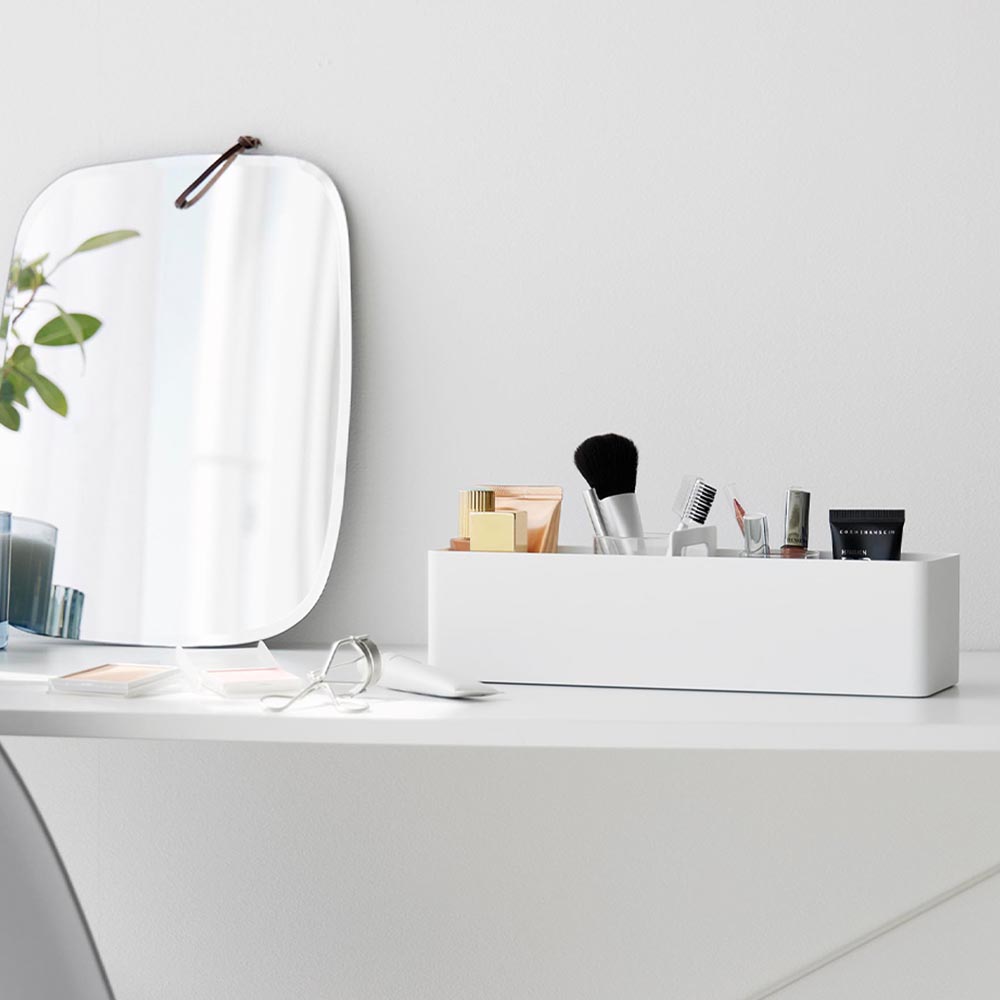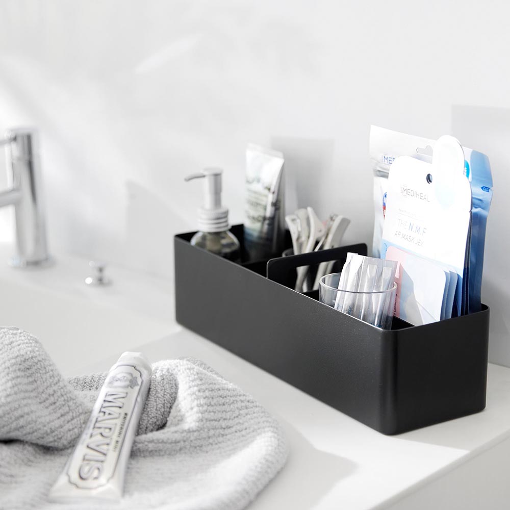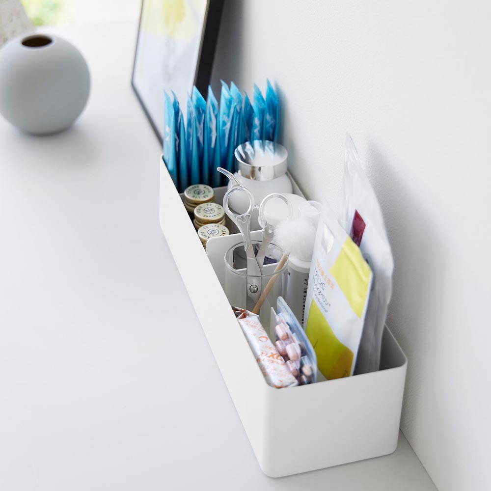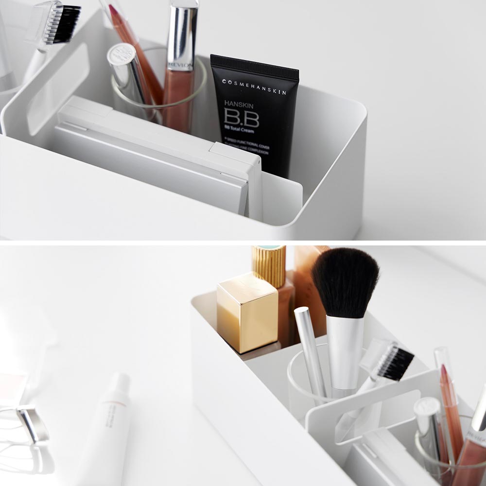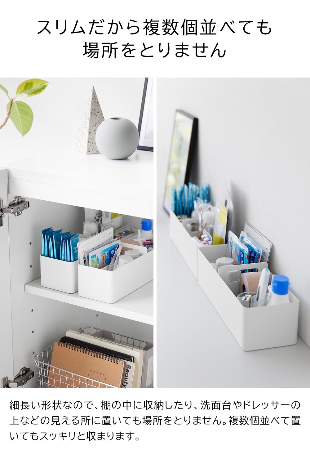 仕切りで種類ごとに細かく分類できるので、薬や衛生用品、メイク用品などの収納に便利!様々な形状のアイテムもまとめて整理整頓でき、コンパクトに収納できます。