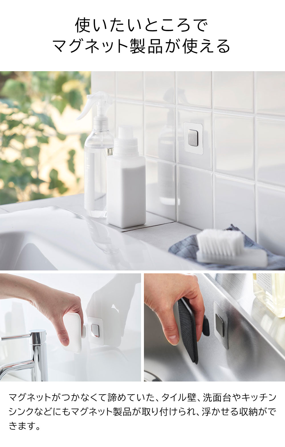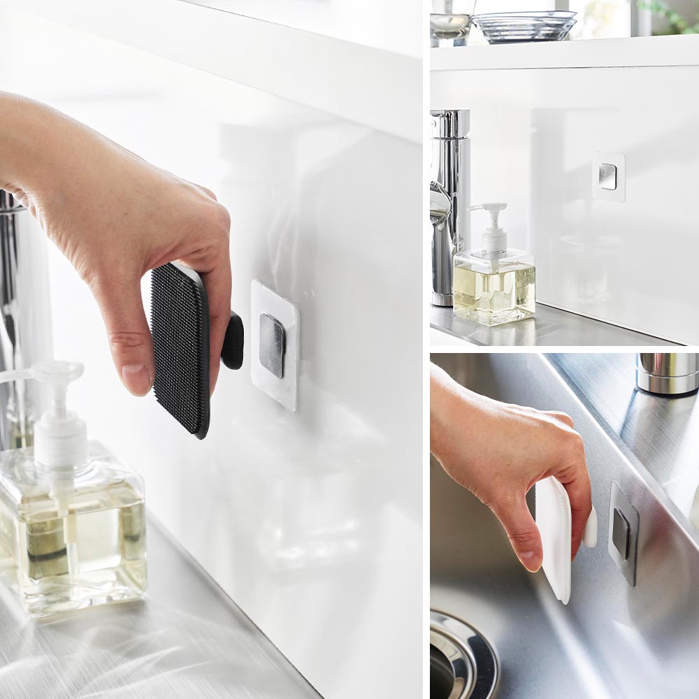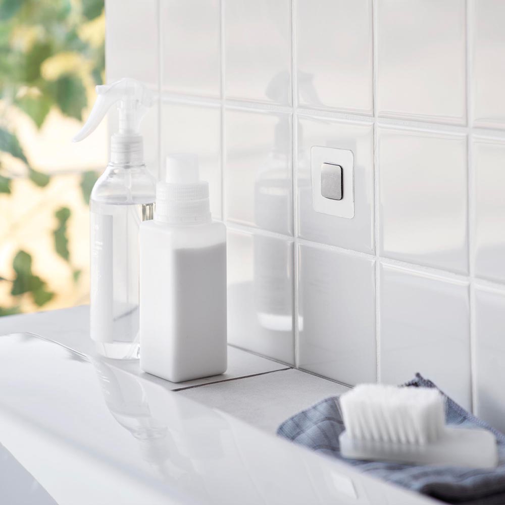 今まで諦めていた洗面台やキッチンシンクなどのマグネットがつかない壁面にも、このフィルムシートを貼っておくだけで、簡単便利にマグネット製品が設置できます。
