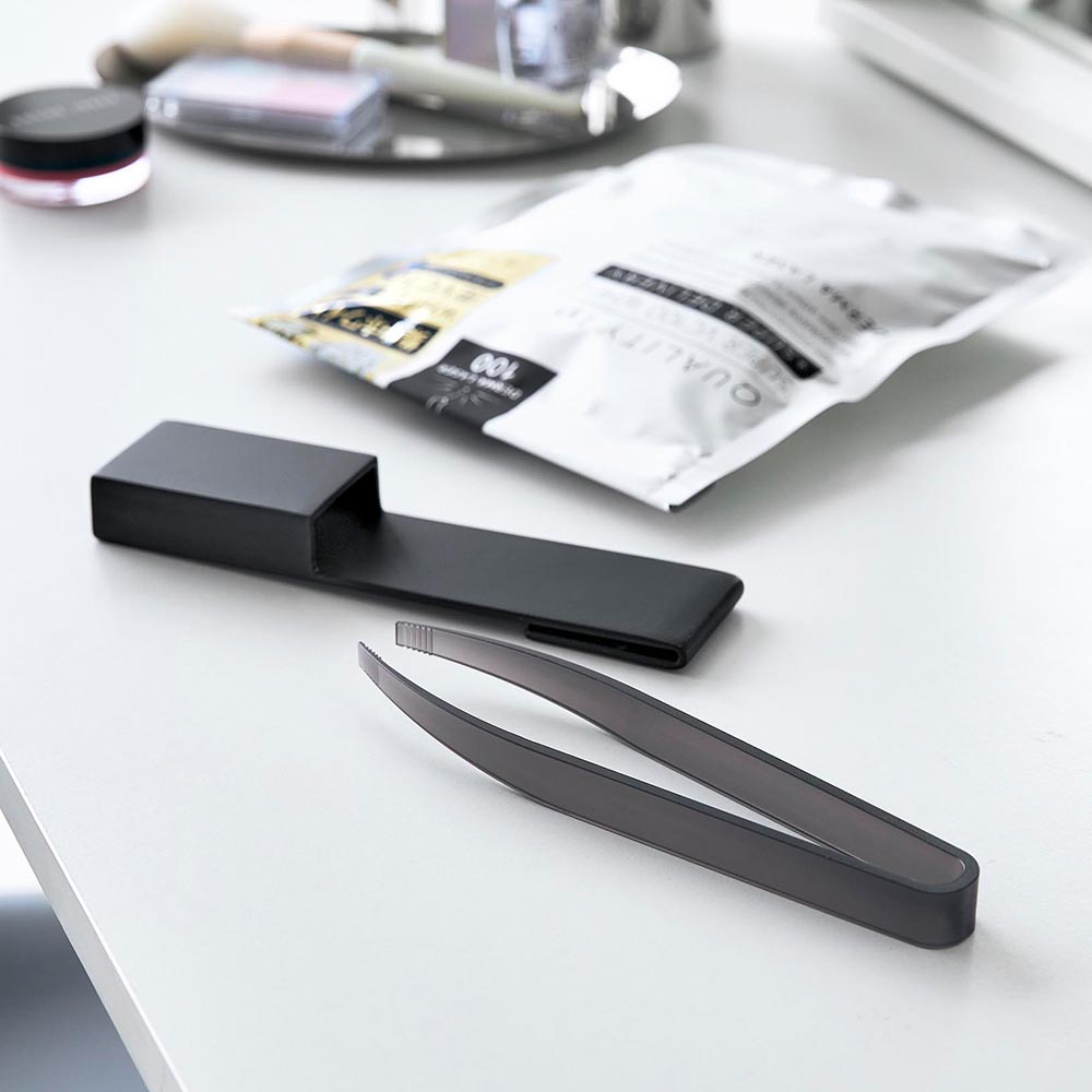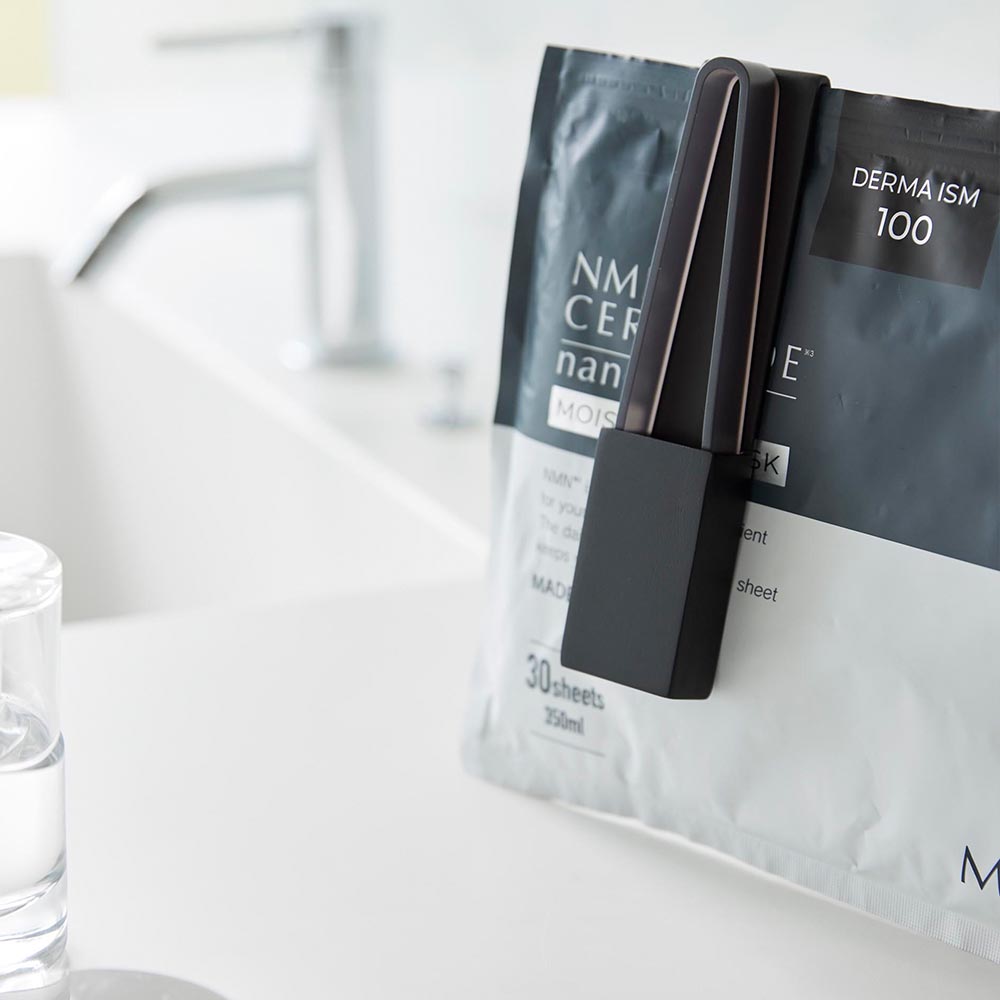 フェイスマスクを衛生的に取り出すことができるホルダー付きトングです。トングが長く、袋の中のフェイスマスクに指を触れずに取り出せるので、清潔に保存できます。洗面台やテーブルに置いても、トングの先端が浮くので衛生的に使えます。
