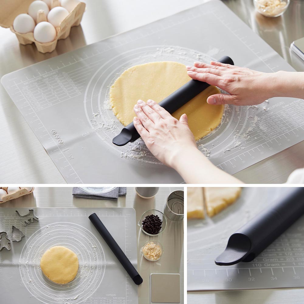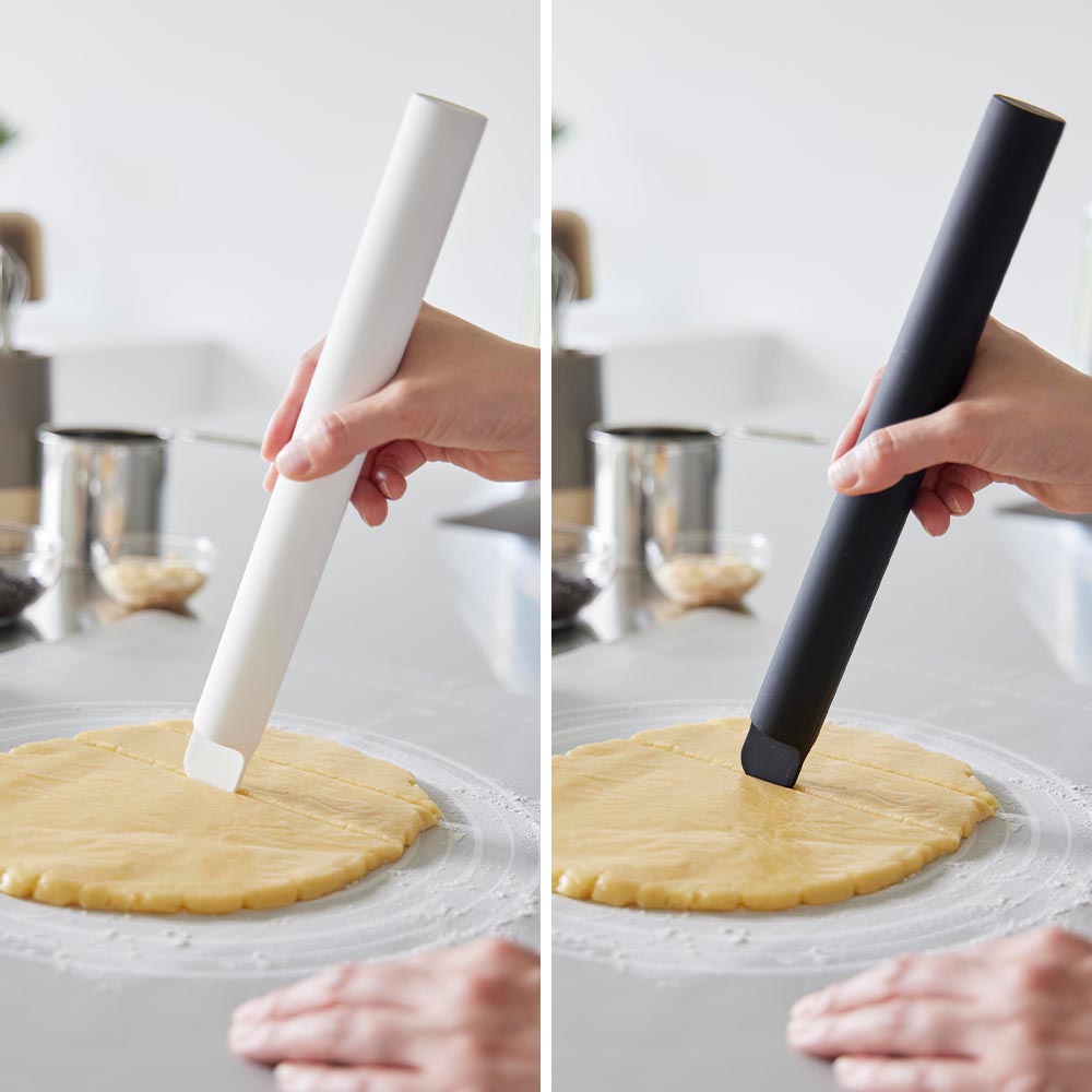 生地を伸ばす・切るができる スケッパー付きのめん棒 食洗機対応のシリコーン製
