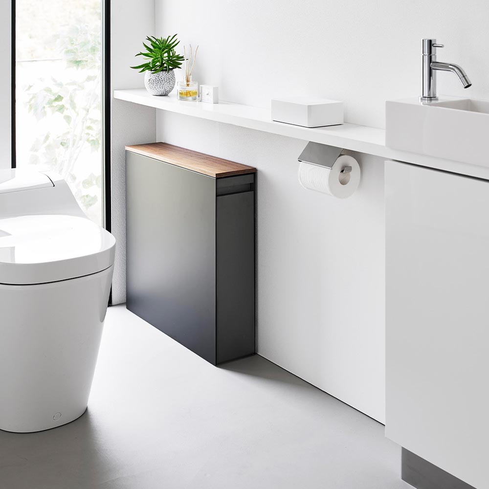 トイレ用品を省スペースに トイレの狭い空間でも、様々なトイレ用品の一括収納ができるスリムな引き出し式ラックです。 幅僅か14cmの細長いラックで、トイレブラシやサニタリー用品、トイレットペーパーなどを綺麗に区分けして収納できます。 トイレブラシ収納部は使い捨てトイレブラシにも対応。 キャスター付きの引き出しで、使わない時は全ての小物を隠せ、スッキリとしたトイレ空間になります。高さが55cmと低めに設計されているので、手洗いカウンターの下にも収まります。 天板は天然木でできており、シンプルでスタイリッシュ!芳香剤やインテリア、スマホなどを一時置きする台としても使え、大変便利です。 スチール製なので、側面にお手持ちのマグネット収納アイテムなどを取り付けて、更に収納の幅を広げるのも◎ 本体の底面には底板があり、ホコリなどが下から引き出しの中に侵入するのを防ぎます。 ![]() ![]() ![]() ![]() ![]() ![]() ![]() ![]() ![]() ![]() ![]() ![]() ![]() ![]() ![]() ![]() |