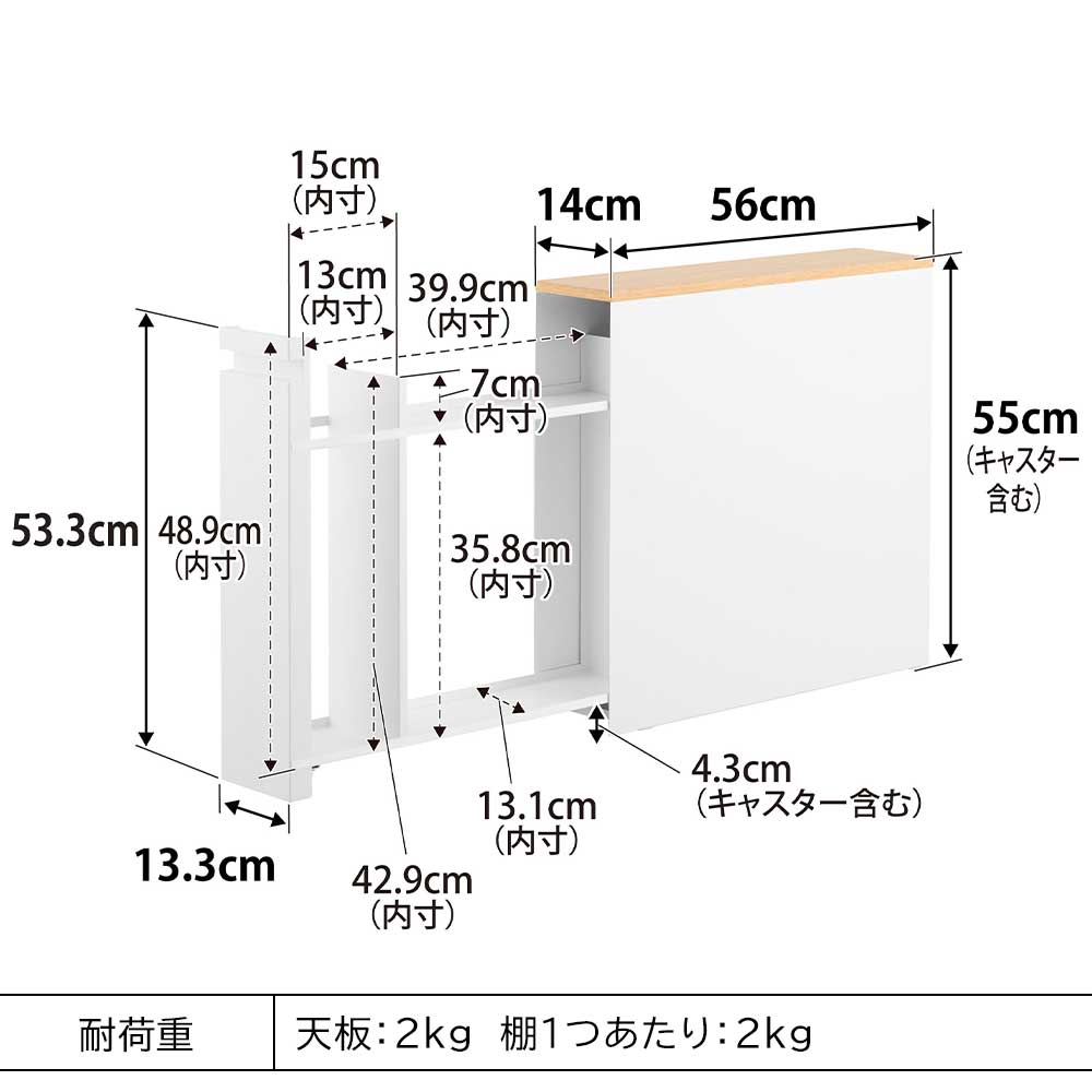 引き出し:棚(手前)W13.1×D15×H42.9cm 棚(上段)W13.1×D39.9×H7cm 棚(下段)W13.1×D39.9×H35.8cm