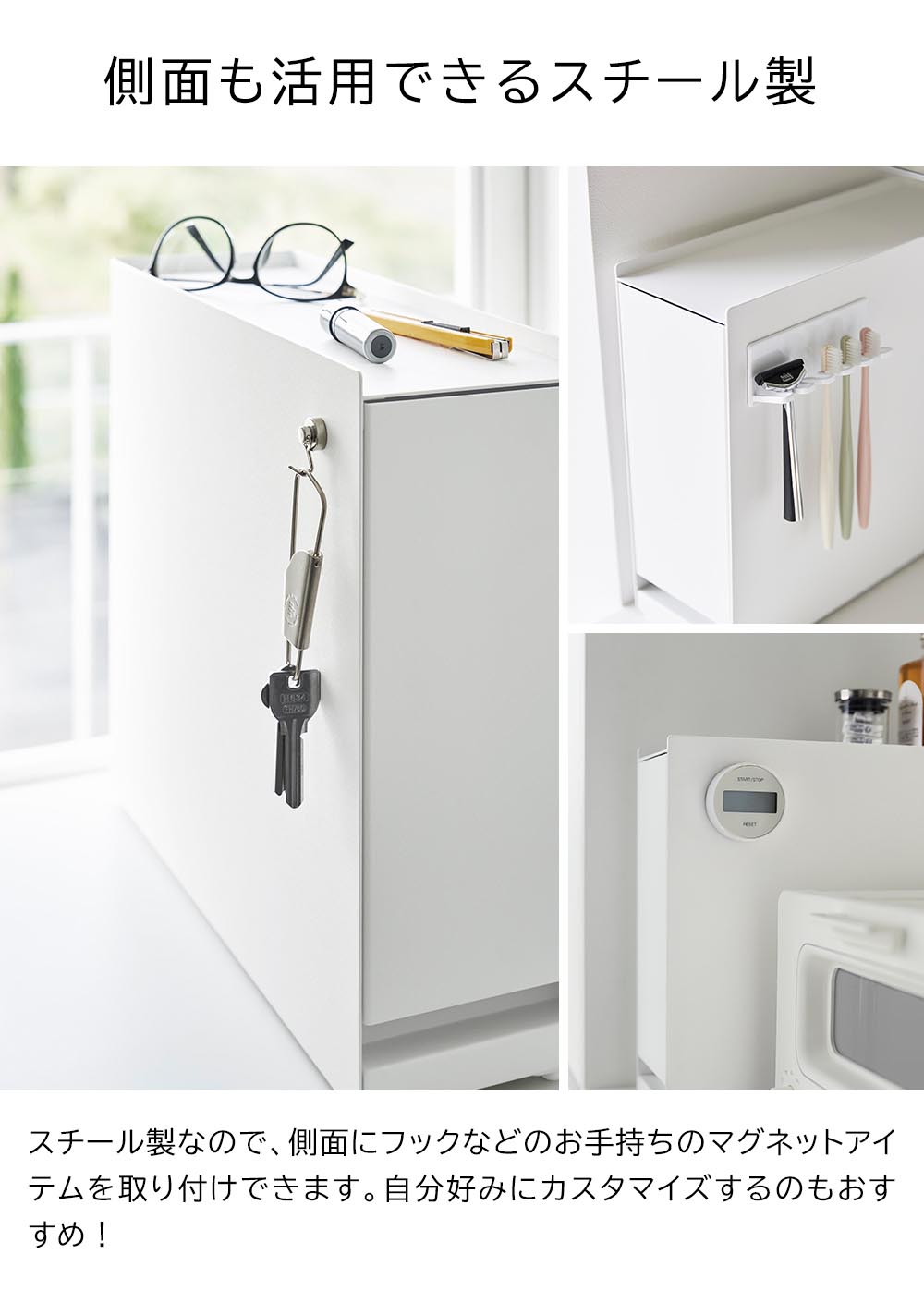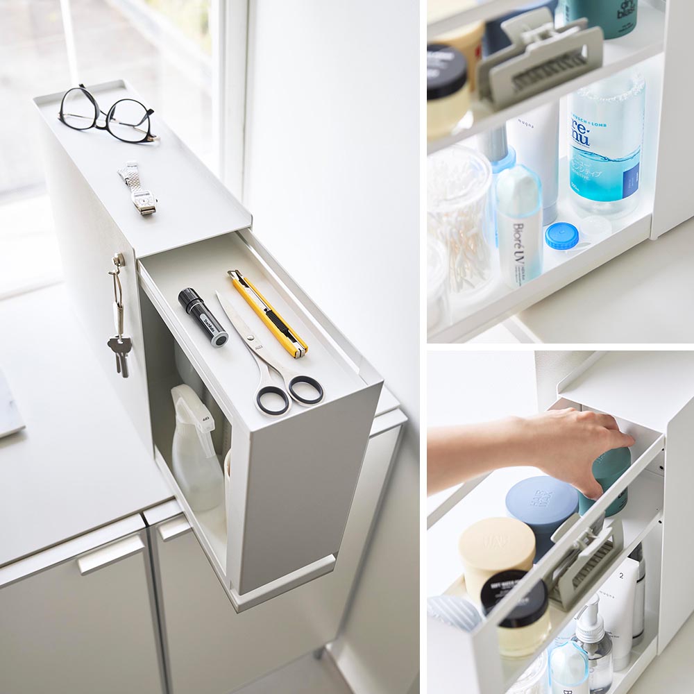 隠せる引き出し収納 タワー ![]() 家中どこでも大活躍! 生活感を隠して収納できる 縦型スリムな引き出し収納 生活感の出やすい物を隠しながら収納できる、引き出し収納ラックです。玄関・洗面所・キッチンなど場所を選ばず、様々な用途で使えるので家中どこでも大活躍!玄関では衣類クリーナーや消臭スプレーなどを、洗面所ではヘアースプレーやワックスなどを一括収納できます。キッチンではカップボードに設置して調味料収納としても◎幅12.5cmの縦型スリムな省スペース設計です。中は2段になっており、棚板の高さ調節が可能。天板には小物を置けます。スチール製なので、側面にフックなどのお手持ちのマグネットアイテムを取り付けて、更に便利にお使いいただくこともできます。 ![]() ![]() ![]() ![]() ![]() ![]() ![]() ![]() ![]() ![]() ![]() ![]() ![]() ![]() |